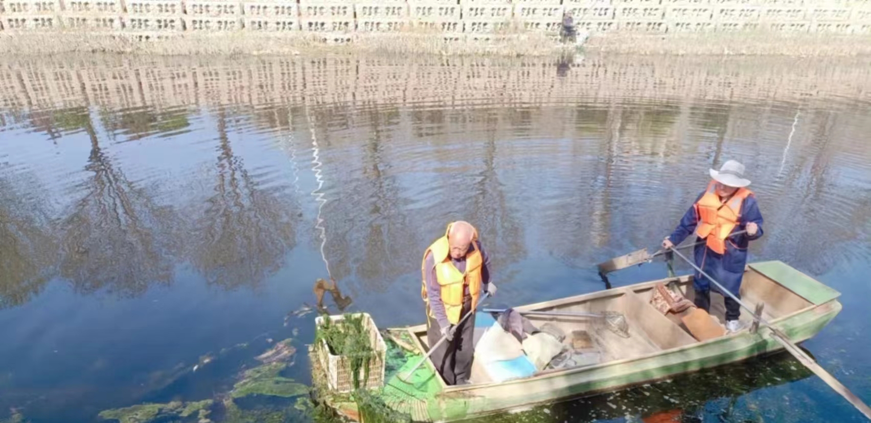 整治行动中,市环卫中心环卫工人对河道沟渠及河道两岸的边坡、道路及河滩的垃圾、枯枝败叶、沿岸杂草等进行打捞,集中清理清运,全力提升河道及周边环境“颜值”。在打捞过程中,采用人工和打捞船相结合的巡回作业模式,对境内的河道水草进行打捞,将河道里的水草、杂草、浮萍等漂浮物一并打捞清理上岸。对河岸两边、死角易积存垃圾点位进行彻底清除,及时清扫捡拾岸边垃圾,避免落入水中造成二次污染。对于河道等水面大面积杂草蔓延现象,一线作业人员利用打捞船对杂草进行切割清运,确保河道两岸的环境得到显著改善。