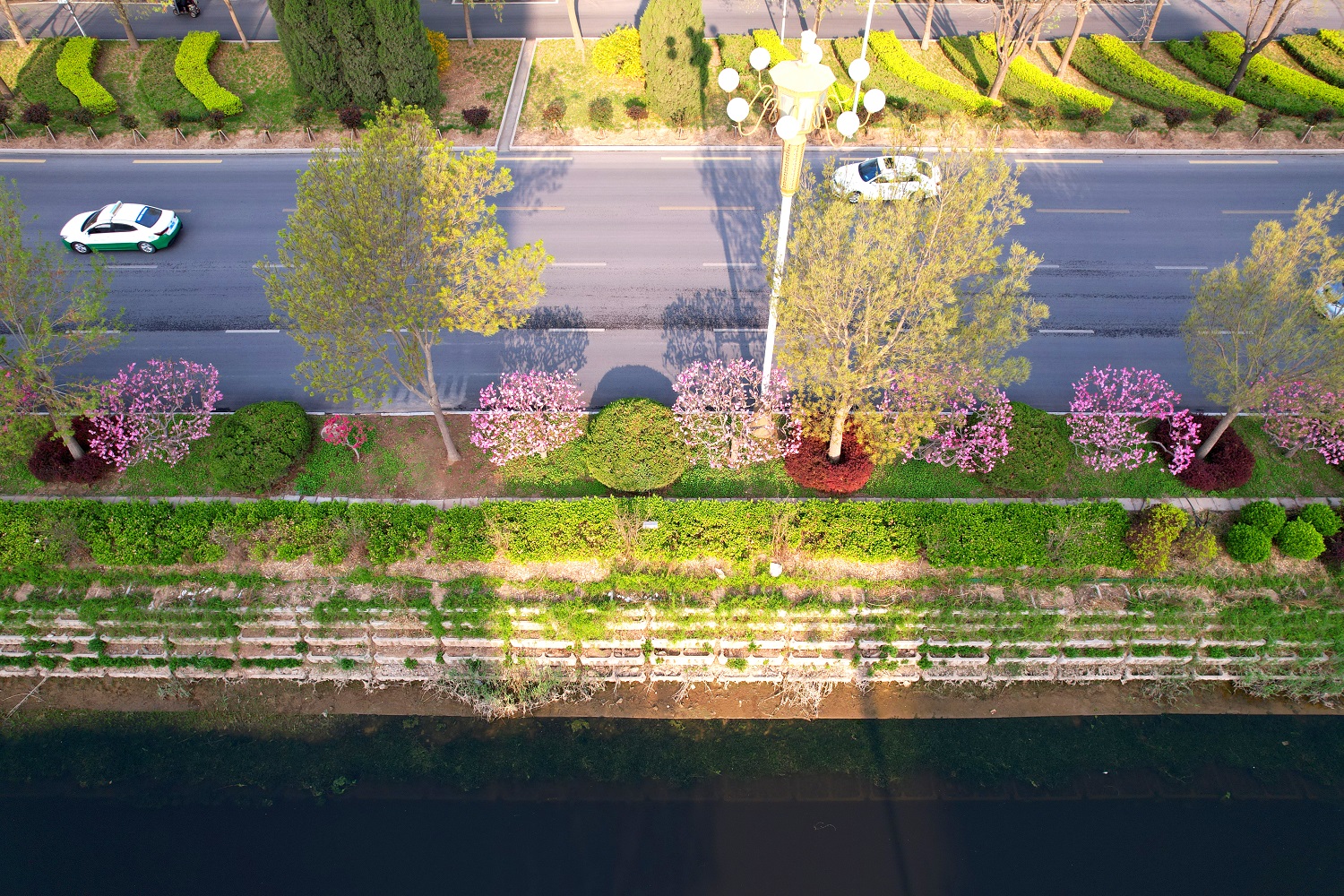 在春花盛开的烂漫时节,不妨趁着约上三五好友,来此打卡拍照,邂逅不经意的美好。在这里也提醒市民,前来赏花要注意过往车辆,不要随意停车或骑车穿行,请到预留的小路中赏花、拍照。