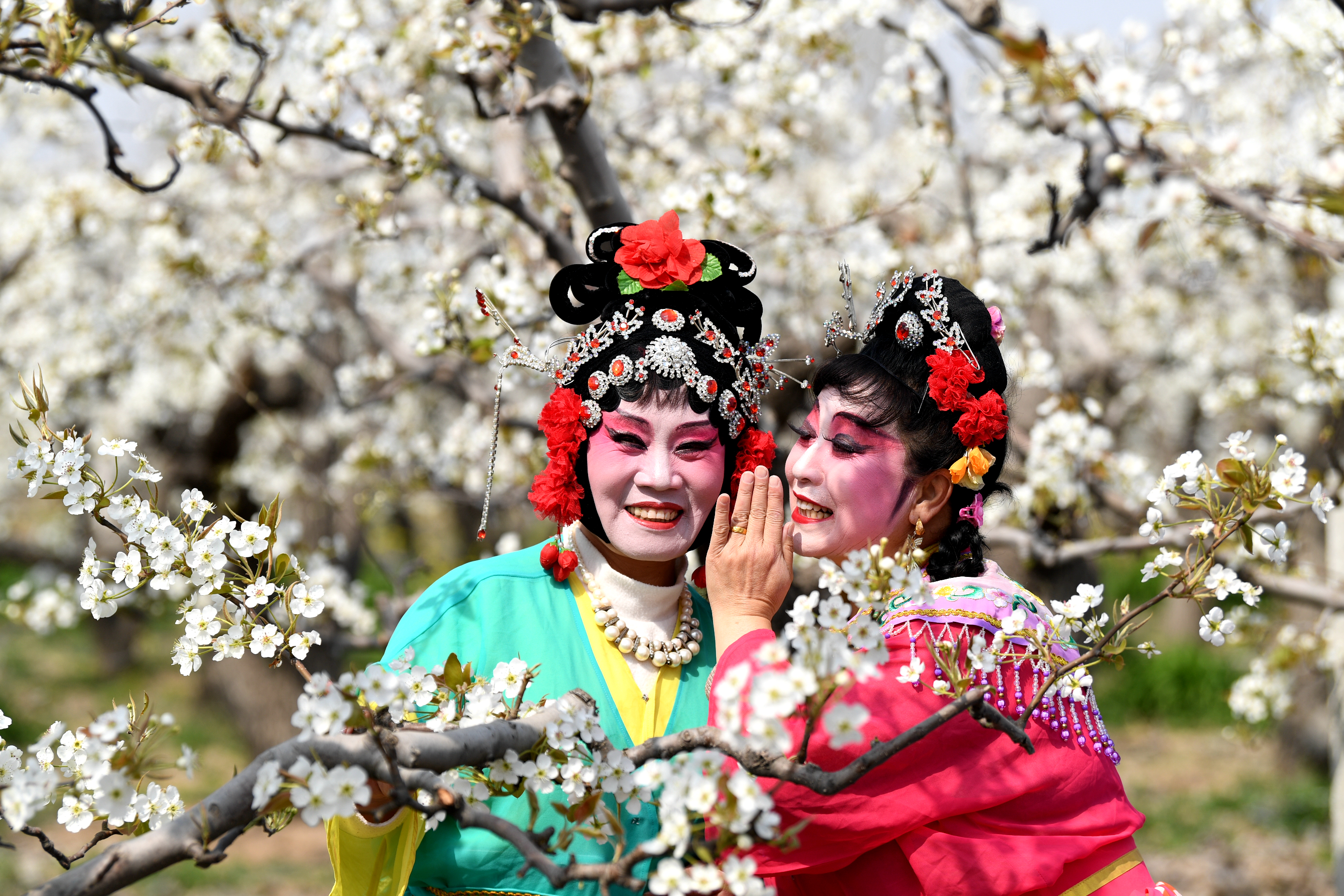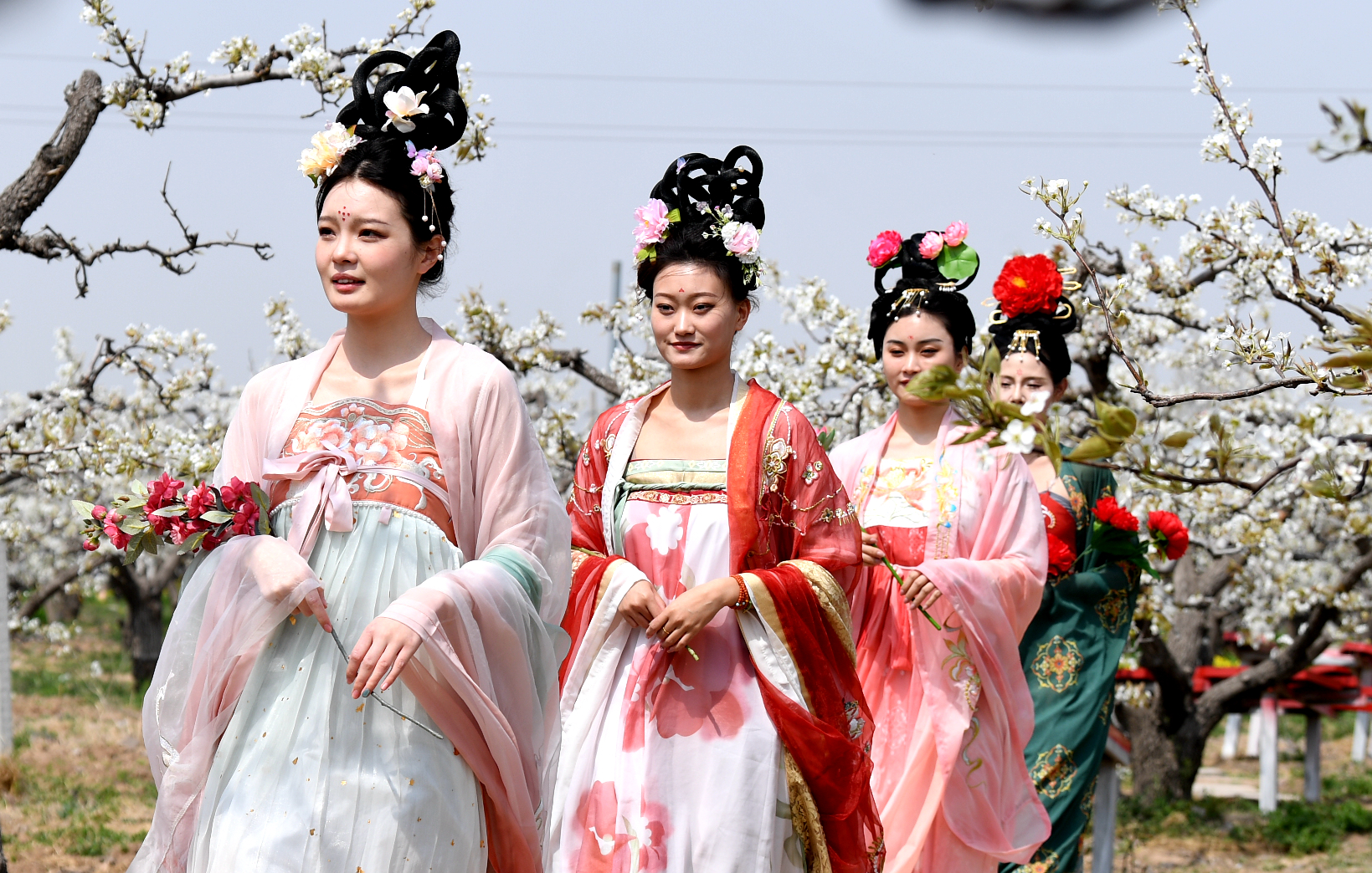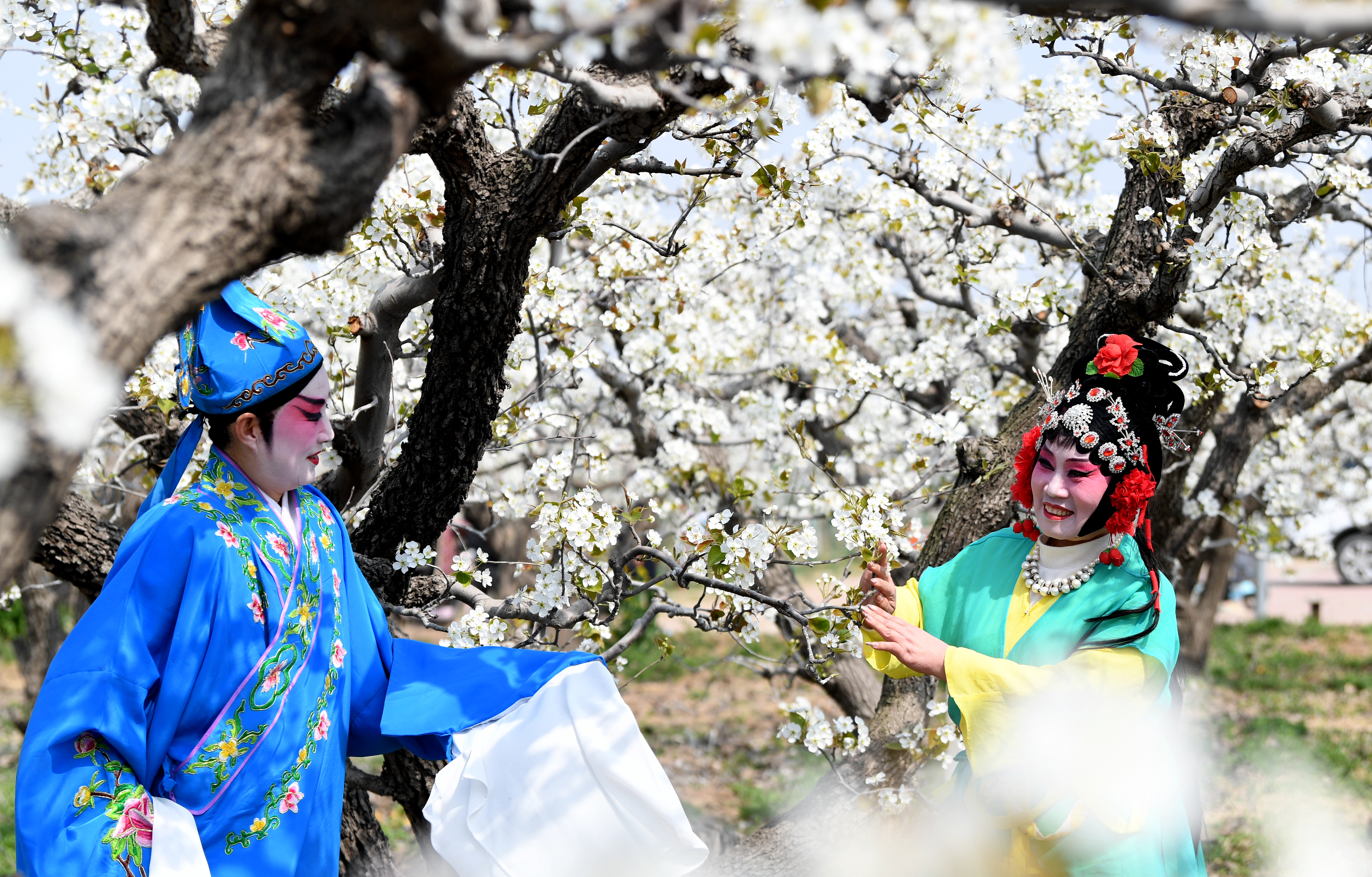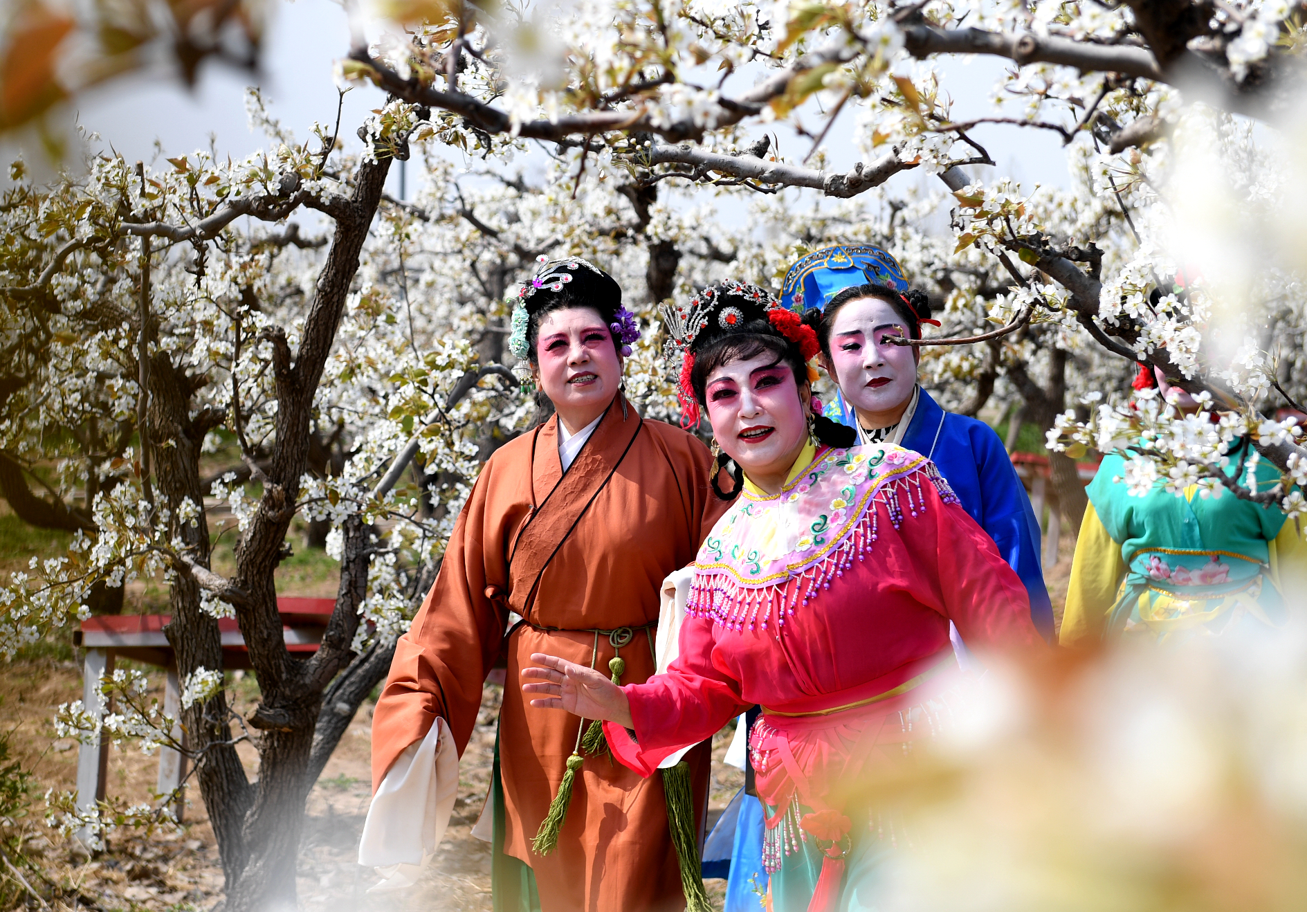 在欢快的鼓乐声中,阜城县第七届梨乡赏花活动盛大开幕。4月8日至4月20日期间,在阜城县霞口镇组织秧歌队、舞蹈队、走秀队在刘老人村百年梨园举办系列文化活动。同时,阜城县文化广电和旅游局组织戏曲爱好者身着戏服畅游在万亩花海中,用曼妙的身姿和动人的唱腔,演绎生活之美。在百年梨园内,身姿绰约的模特队和身着汉服的游客漫步其中,古典的秀美和梨花的雅致相得益彰,秀出无限春色。