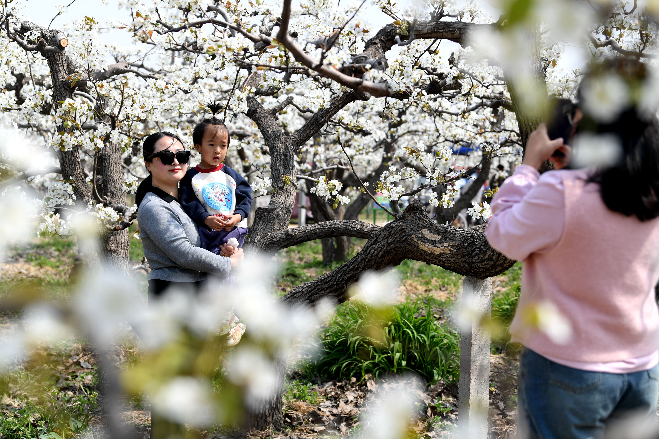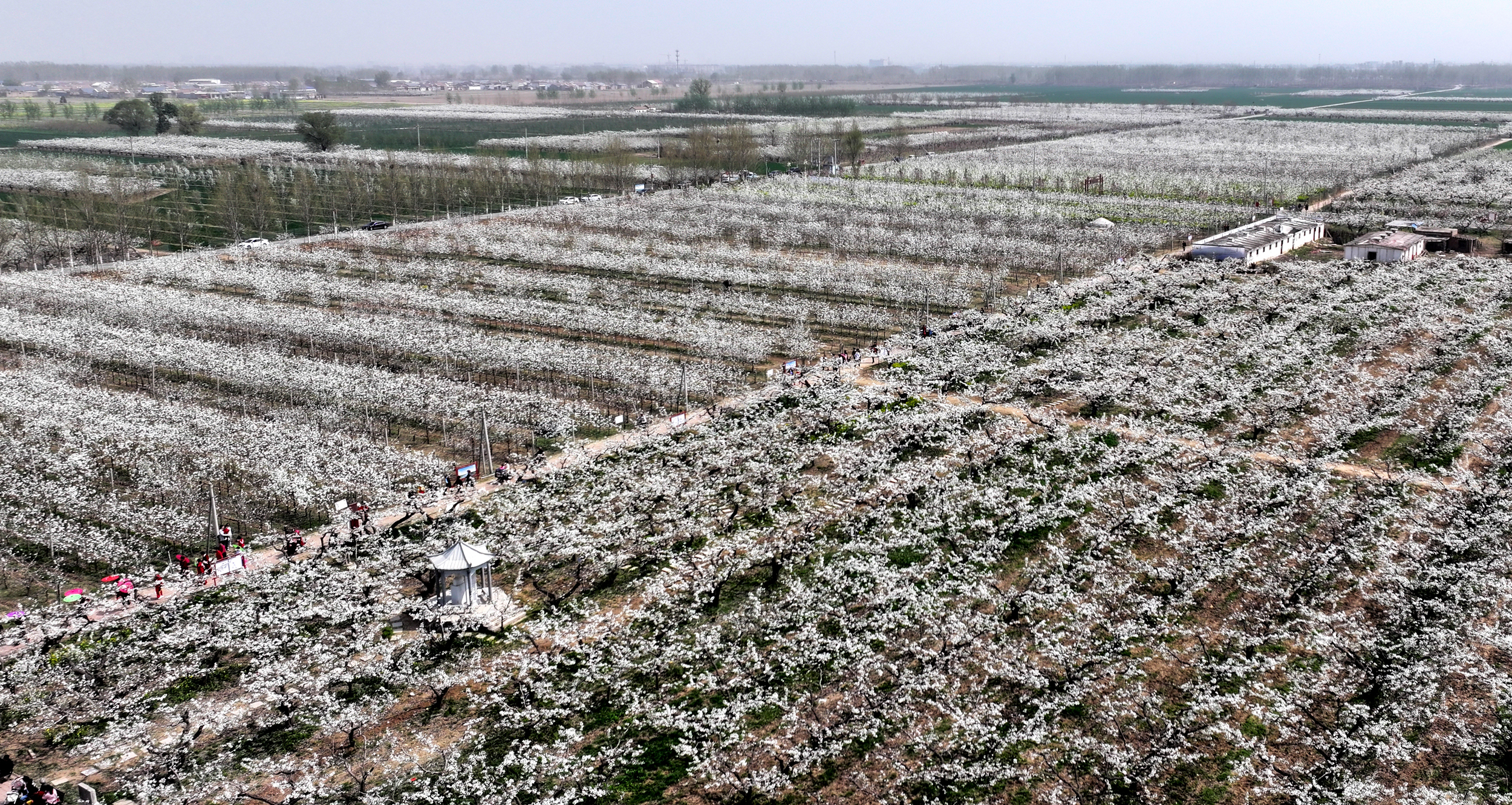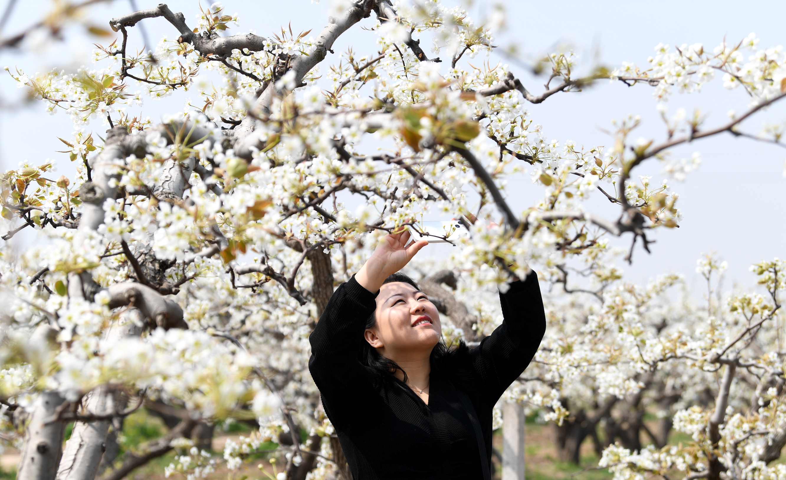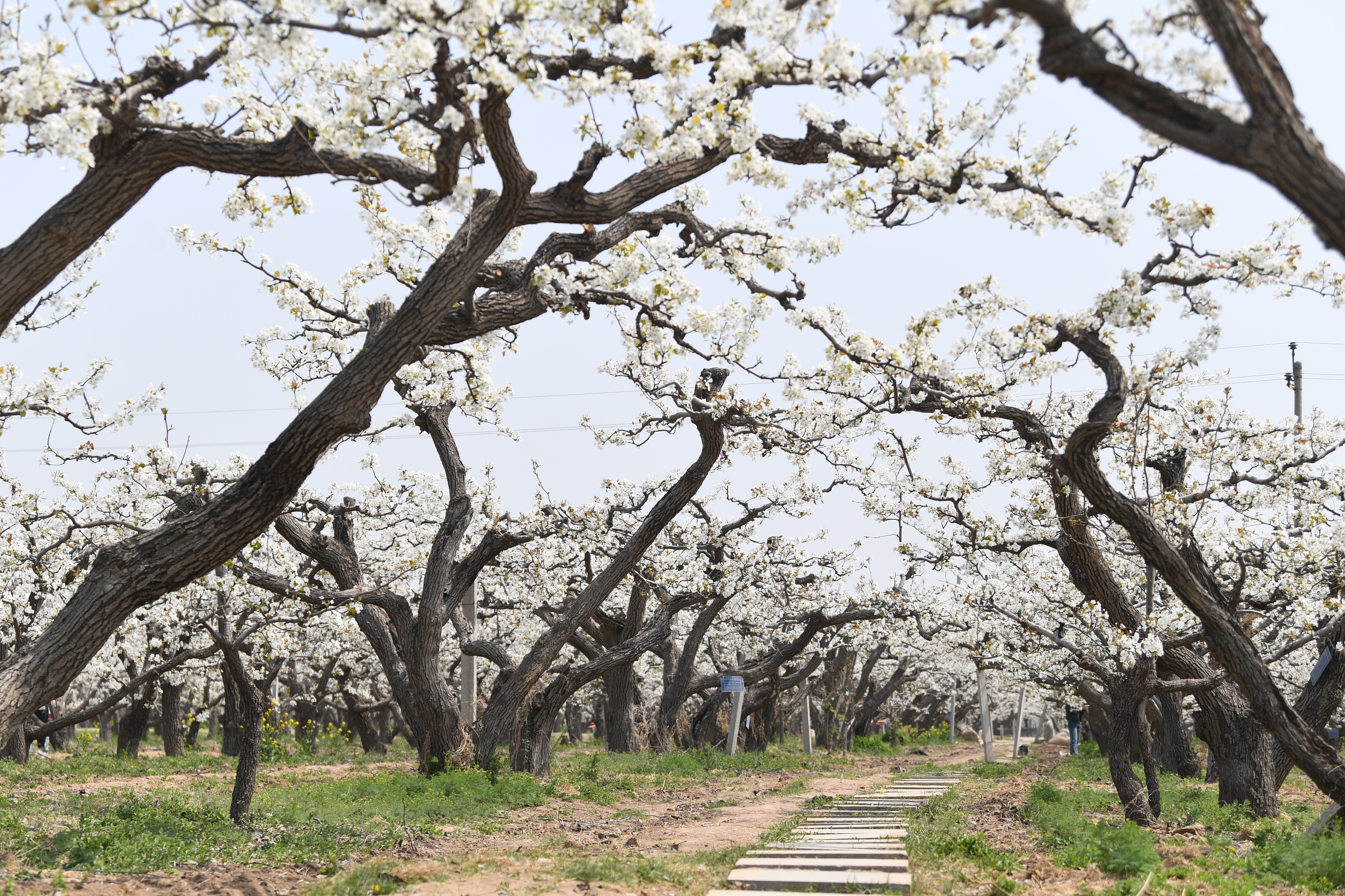4月8日,走进河北省衡水市阜城县霞口镇刘老人村百年梨园,梨花盛开,一簇簇一层层,如漫天飞雪,成为一道美丽的风景线,现场吸引了1.5万名游客前来踏春赏花、拍照。
