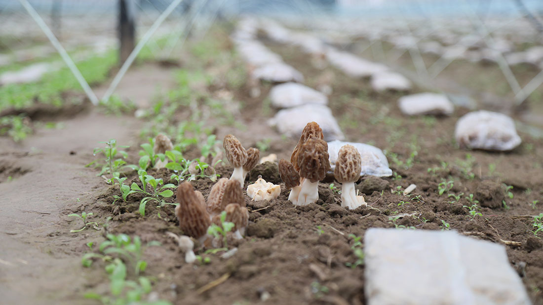 破土而出的羊肚菌。阜城县融媒体中心供图
