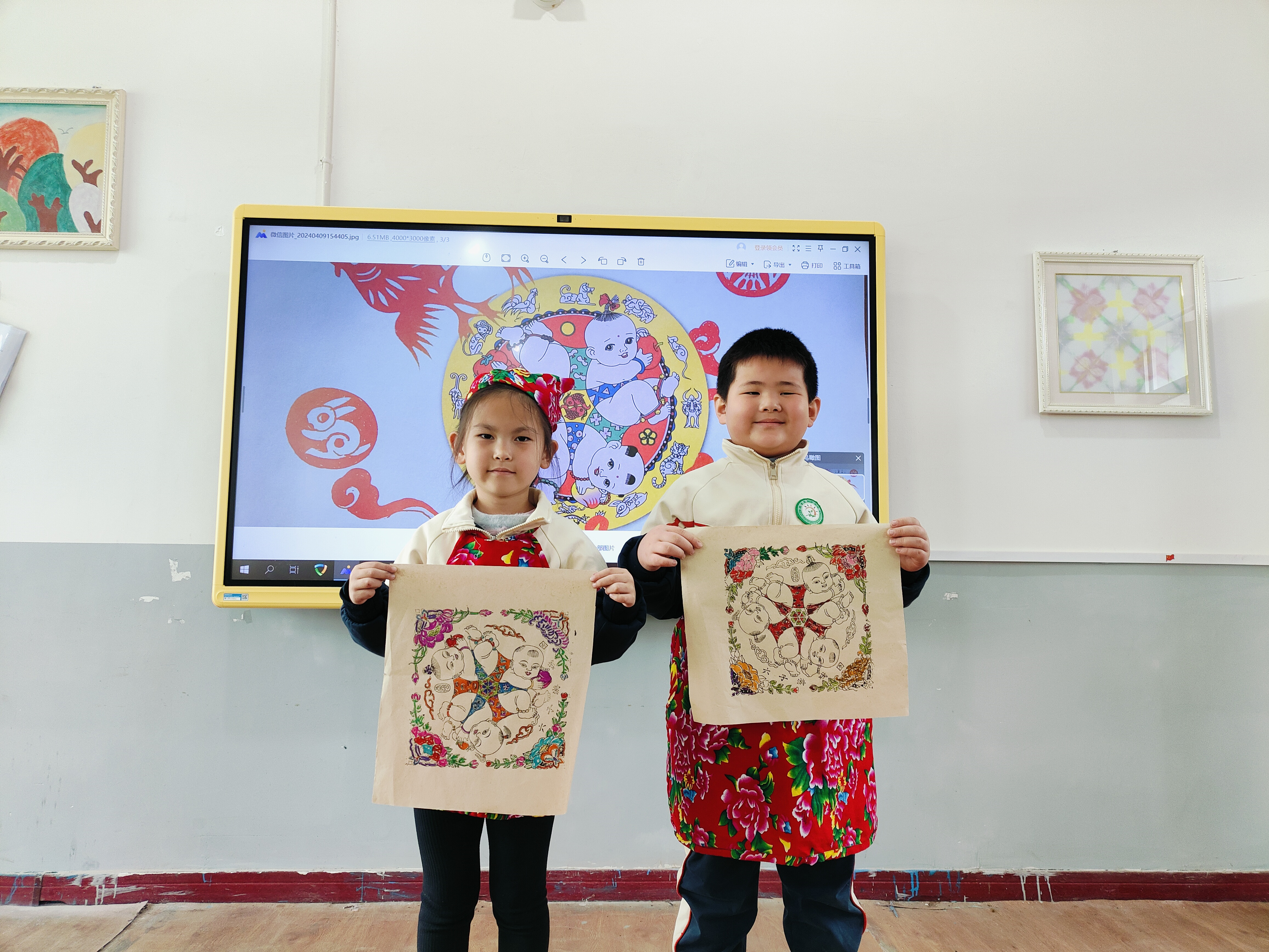 随后,孩子们在掌握印刷基本要领之后,迫不及待地动手体验起来:木板刷色,纸张抻平,搪子擦压,着色成画。“哇!我也会印刷年画啦”“快看呦,我印的年画最漂亮”……看着一张张年画跃然纸上,孩子们直呼“太好看”、“太神奇了”。