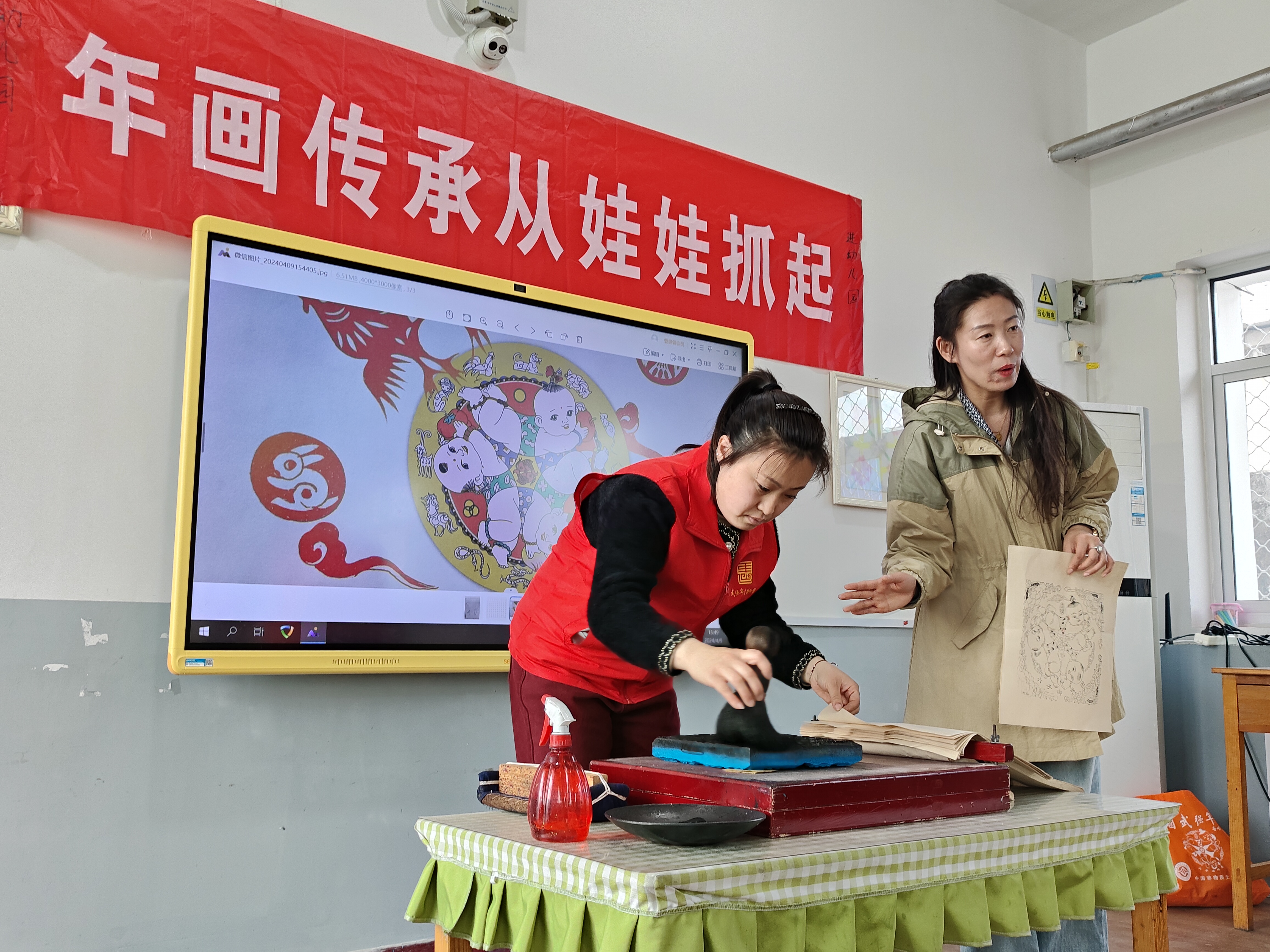 为进一步加强非物质文化遗产传承与保护,继承和弘扬中华民族优秀传统文化,4月9日下午,武强年画博物馆与武强县第一幼儿园联合开展“年画传承从娃娃抓起”主题活动,通过讲解武强年画文化内涵和体验年画印刷等方式,将木版年画文化融入到校园活动中,让孩子们从小走近年画、接触年画、了解年画、体验年画、爱上年画,让非物质文化遗产的传承真正做到从娃娃抓起。