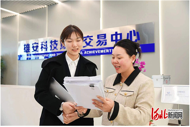 3月20日,在雄安科技成果交易中心,入驻企业在向工作人员咨询科技创新相关政策。河北日报通讯员赵荣昊 摄
