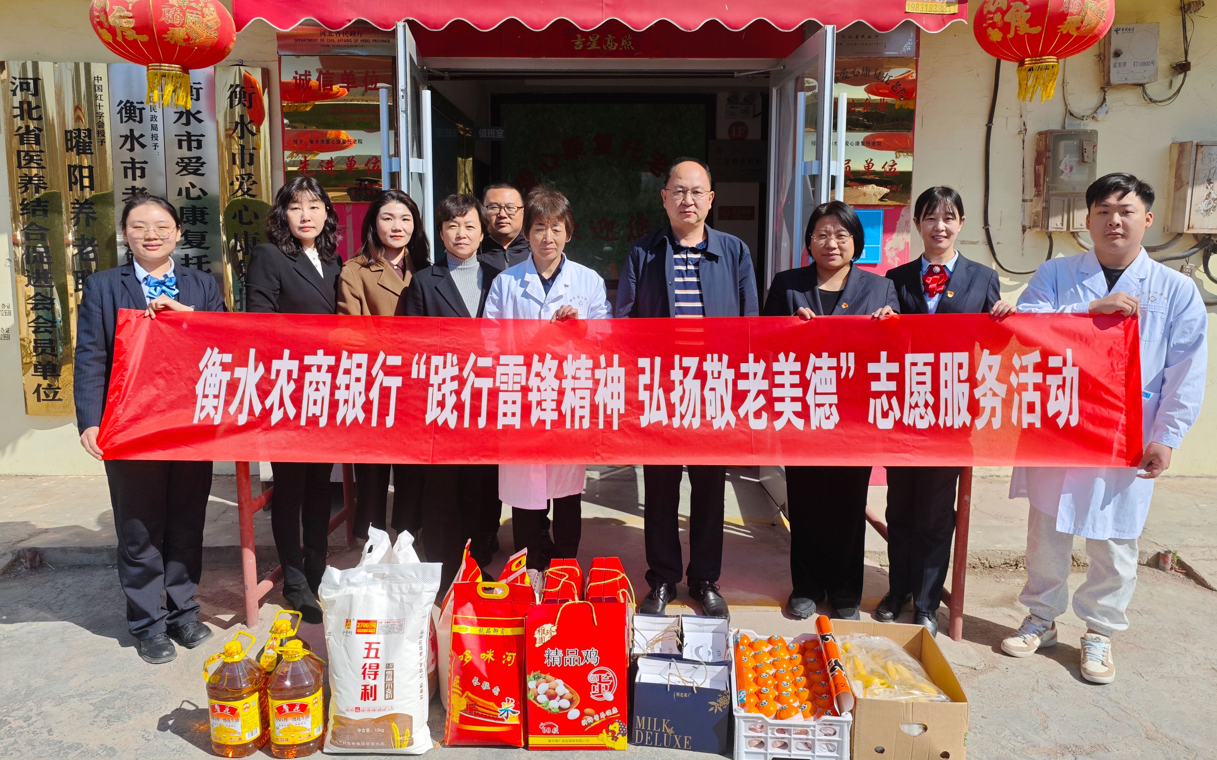 为践行雷锋精神,弘扬尊老、爱老、敬老、助老的中华民族传统美德,近日,衡水农商银行组织党员、青年志愿者组成志愿服务队走进衡水市爱心康复托老院开展“践行雷锋精神弘扬敬老美德”志愿敬老活动。