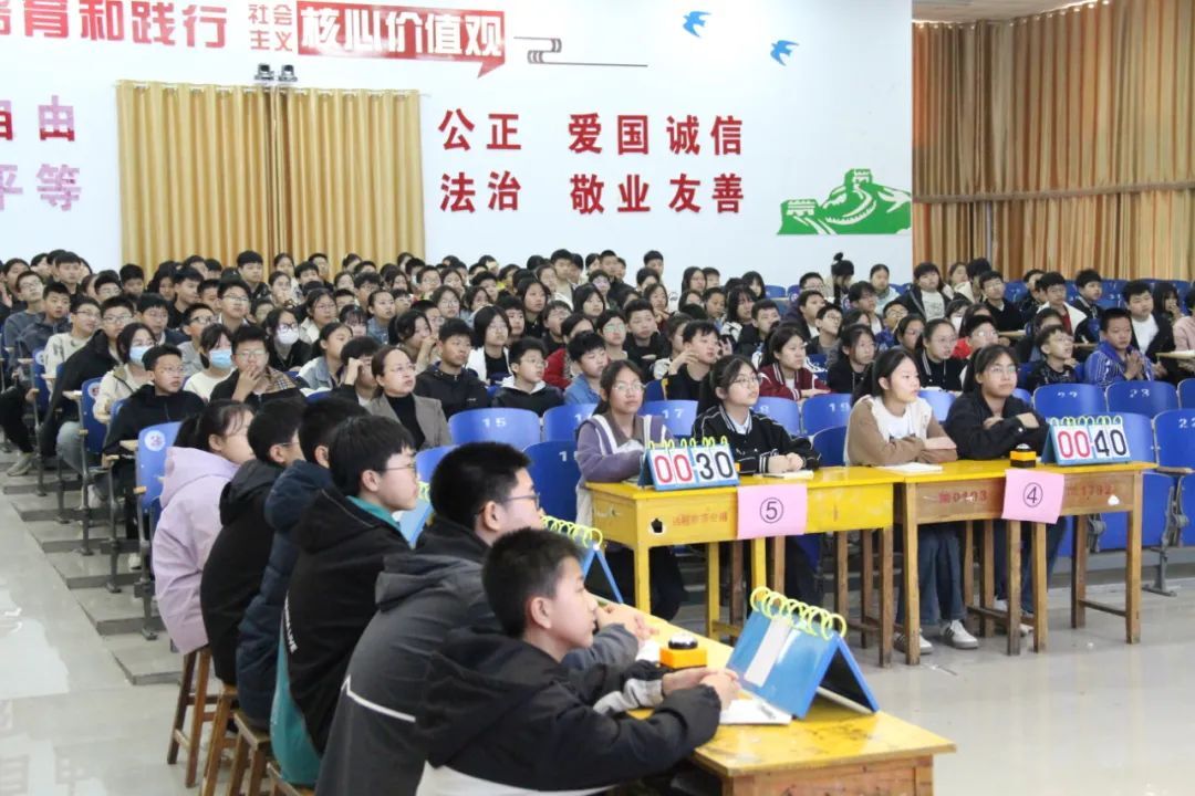 活动围绕安全上网、个人信息保护、防沉迷和互联网领域法律法规等内容,精心设置了去伪存真(必答题)、争分夺秒(抢答题)、协作共赢(贴耳传话)三个环节,来自七年级的16名选手赛前准备充分、现场反应迅速,在一次次的举手、按键中加深了对网络安全知识的学习和理解。现场观赛同学聚精会神、以观促学,热烈的掌声将现场氛围推向高潮。
