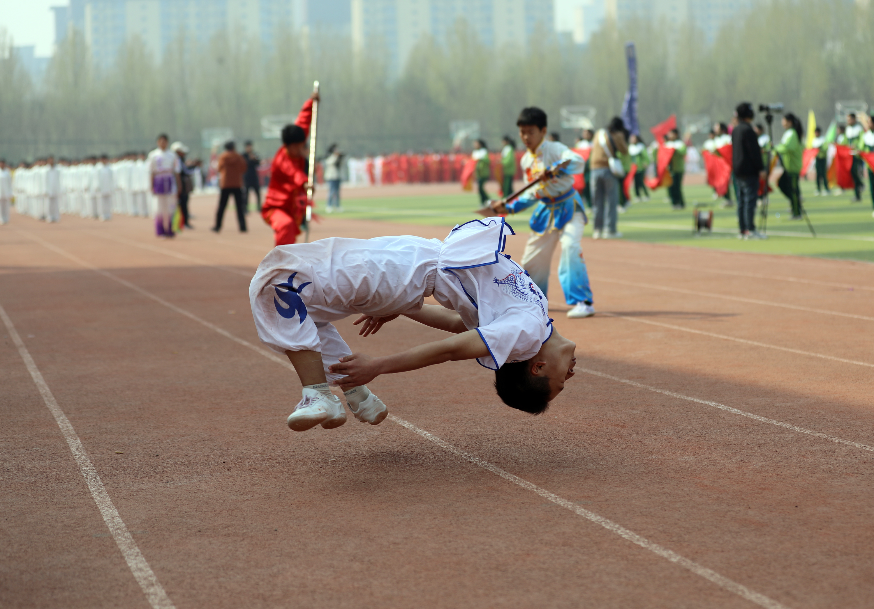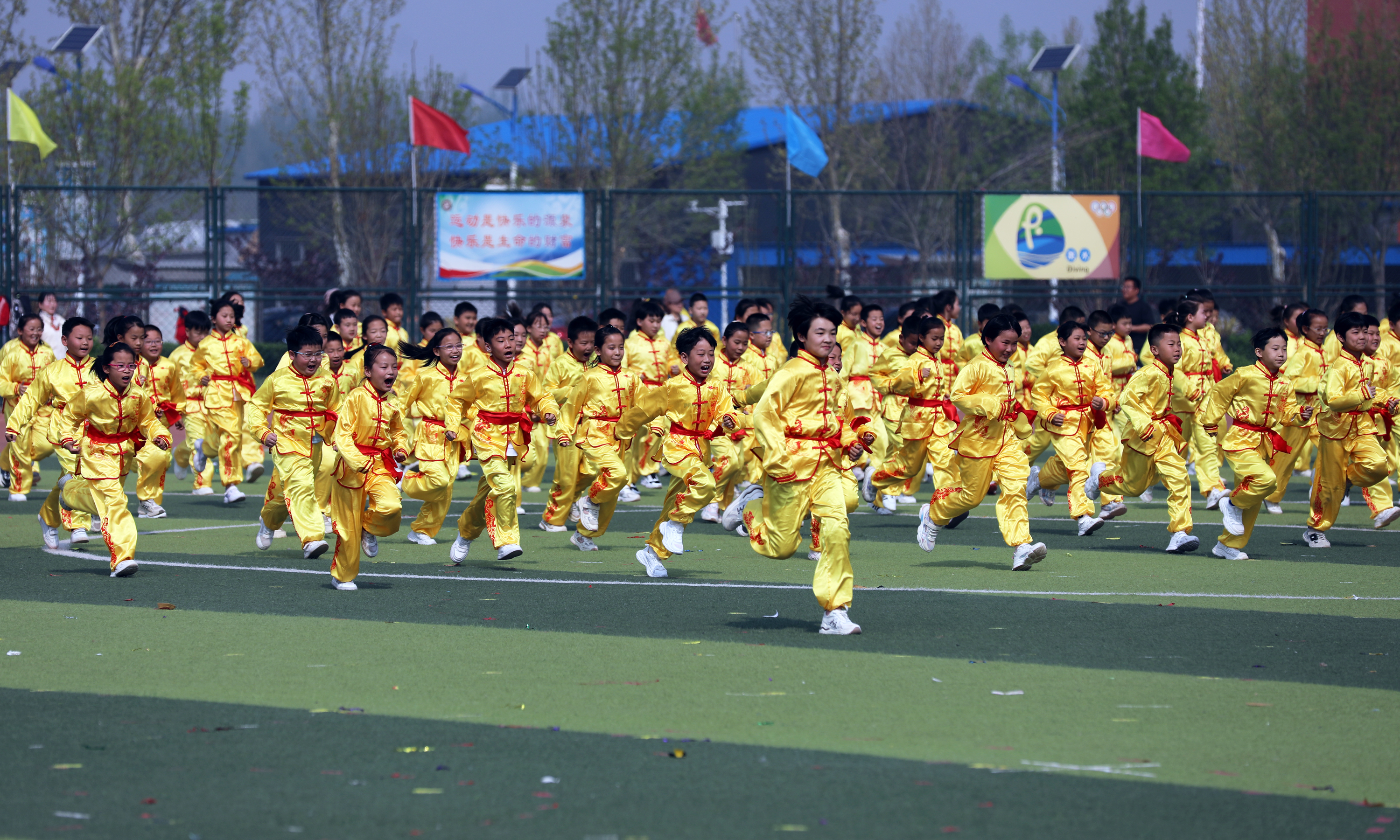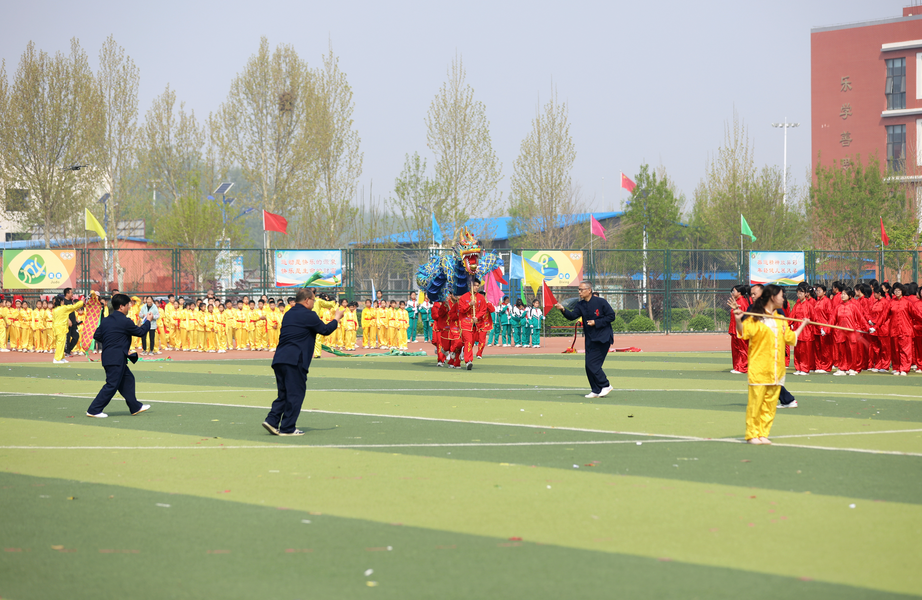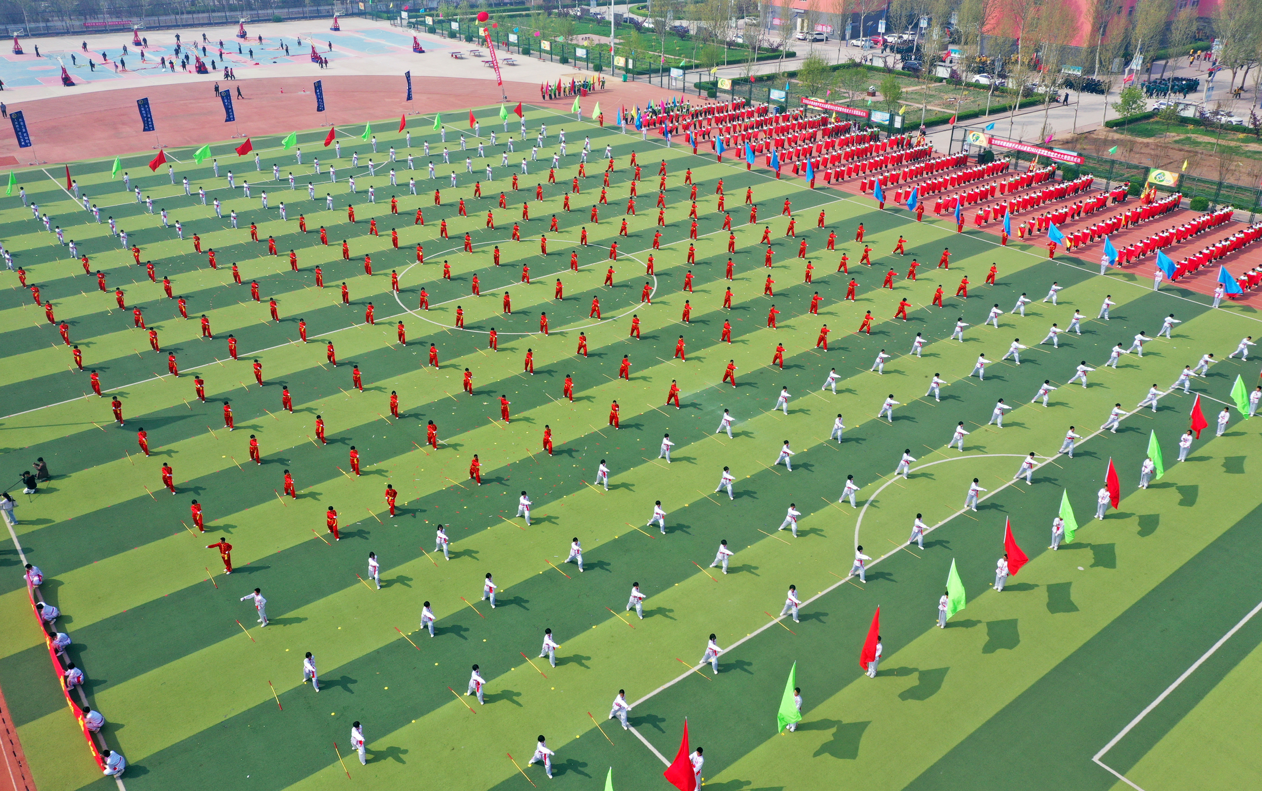 开幕式上,3000人进行了大型传统武术展演。其中来自深州市第三中学形意拳教学基地的千余名学子,一边朗诵《满江红》,一边集体习练形意拳,气势十足,尽展雄风。
