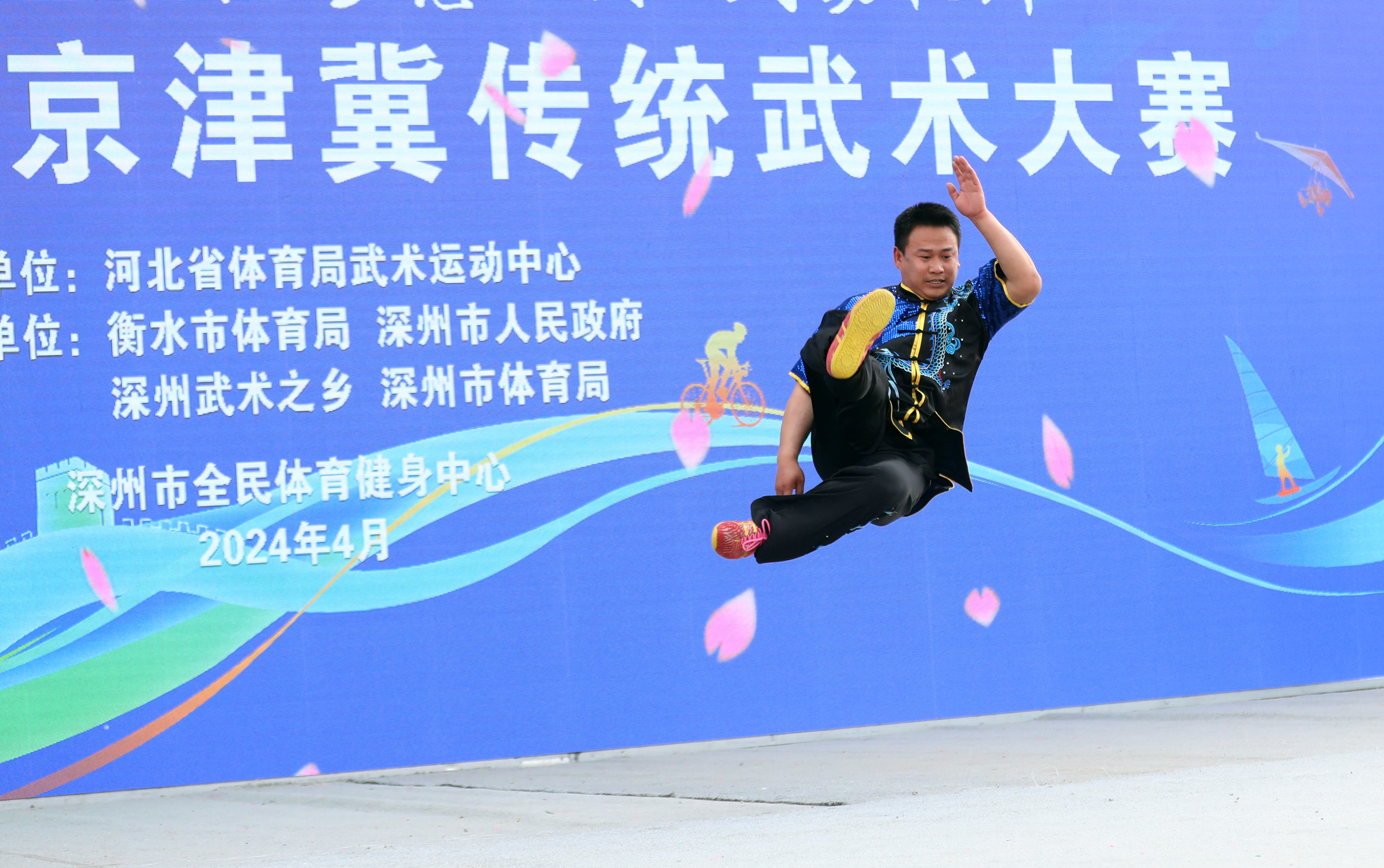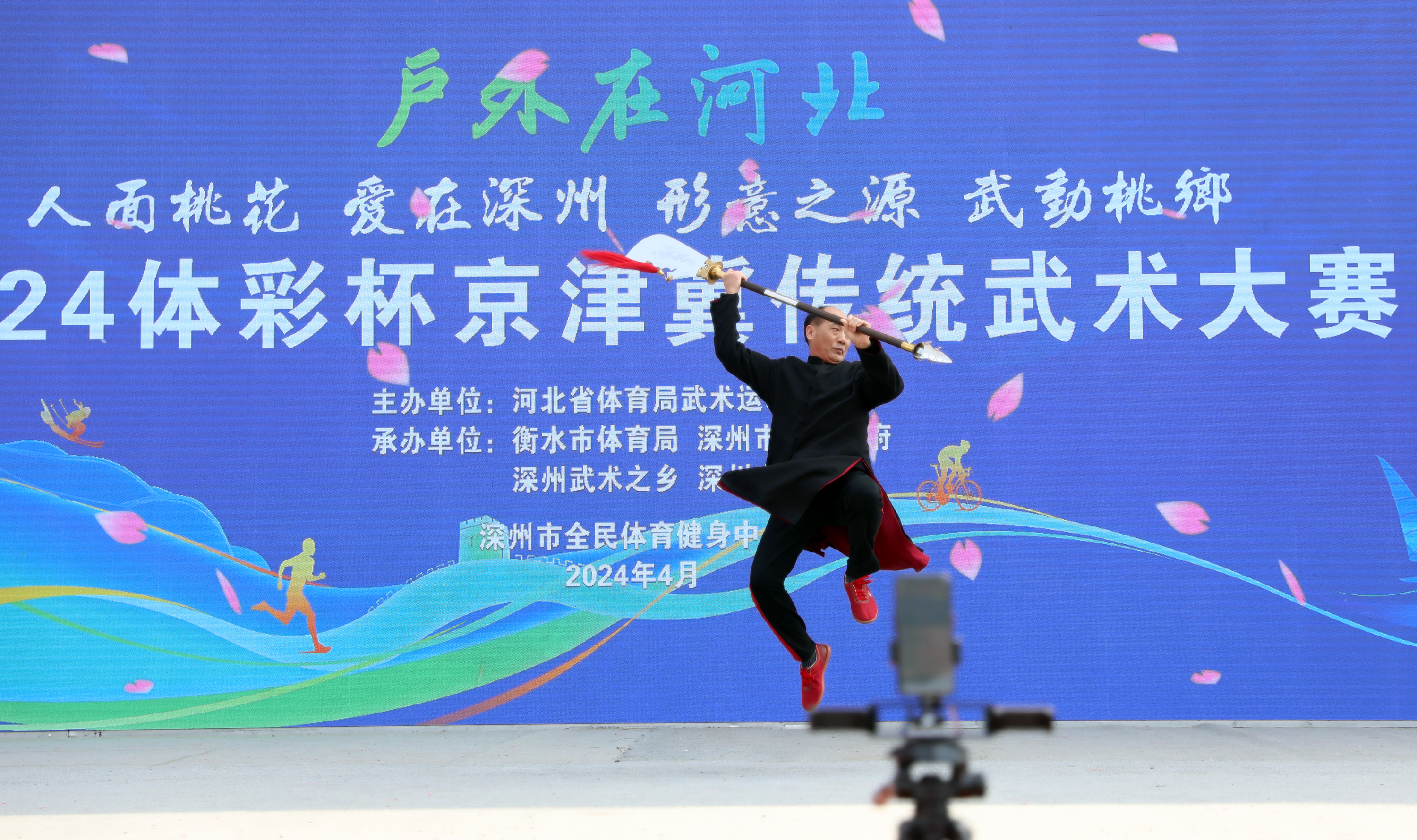 4月11日,2024“体彩杯”京津冀传统武术大赛在深州市全民体育健身中心拉开战幕。这是一场弘扬中华优秀传统文化,振奋民族精神的赛事,也是一场展示深州武术文化、蜜桃文化及非遗魅力的盛会。参赛选手们用热情点燃激情,用拳脚展现中华武术风采。