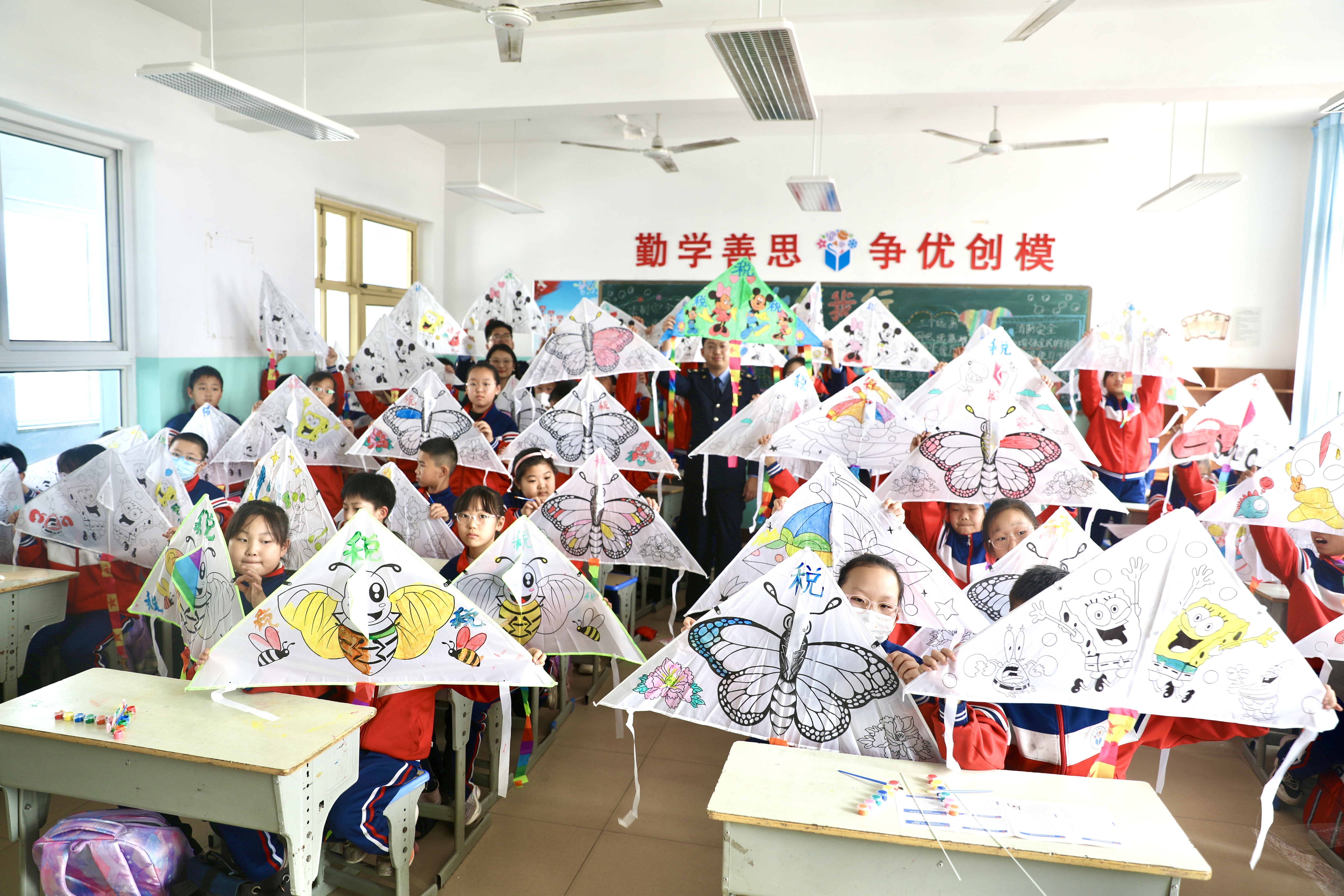 随后,税务干部给学生们发了空白风筝,学生们与税务干部分工合作,兴奋在风筝上画着、写着,表达着对税收、税法的理解。“今天这节课让我详细了解了税收的历史和由来,我一定会当好‘税收宣传员’,带动家人朋友依法纳税。”学生李丽说。