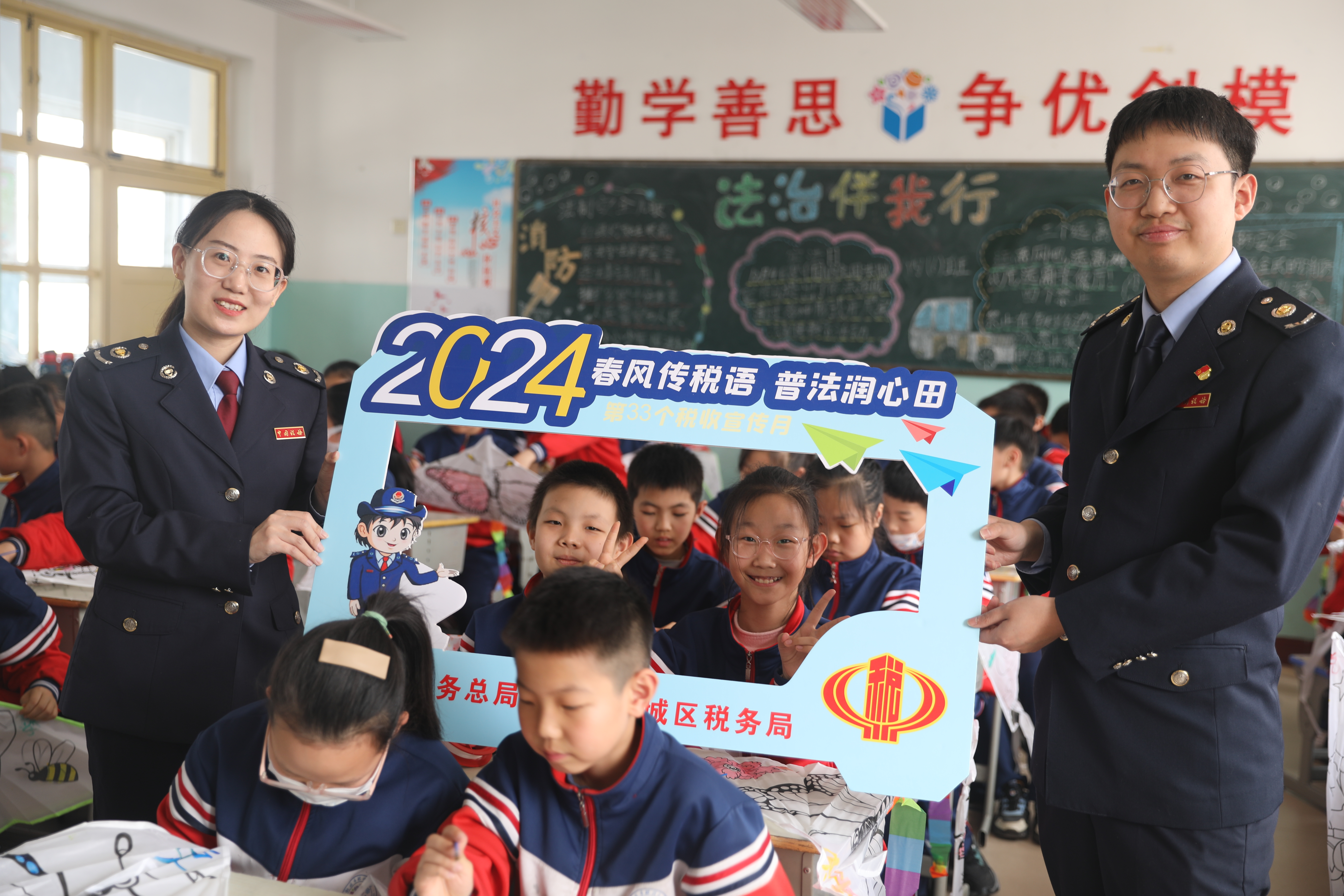 4月10日,在第33个全国税收宣传月期间,国家税务总局衡水市税务局联合国家税务总局衡水市桃城区税务局到市区胜利小学开展“税惠春风拂纸鸢 童心放飞税收梦”税法宣传进校园活动。税务干部化身“税法老师”,走进校园、来到课堂上,通过多种方式开展税收普法活动,积极播撒“法治种子”,营造“学税、懂税、护税”的浓厚氛围。