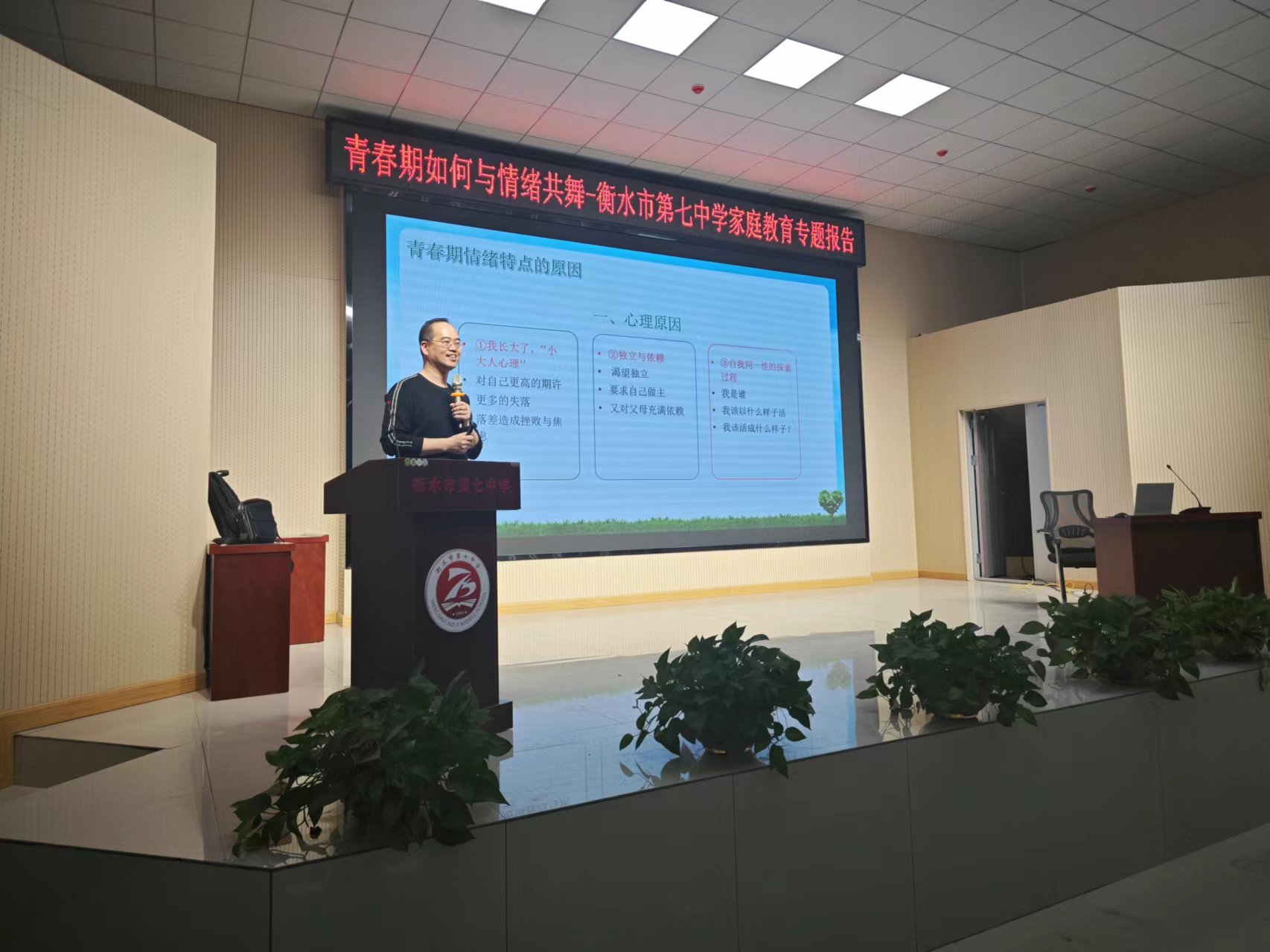 “孩子们,情绪没有对错,不能压抑,我们要学会用正确的方式,让情绪更好的流淌出来。”4月11日,衡水市第七中学多媒体会议室中掌声雷动,一场别开生面的家庭教育专题报告会正如火如荼地进行。此次报告会旨在帮助初一、初二的师生及家长更好地理解和应对青春期的挑战,吸引了线上线下共1000多人热情参与。