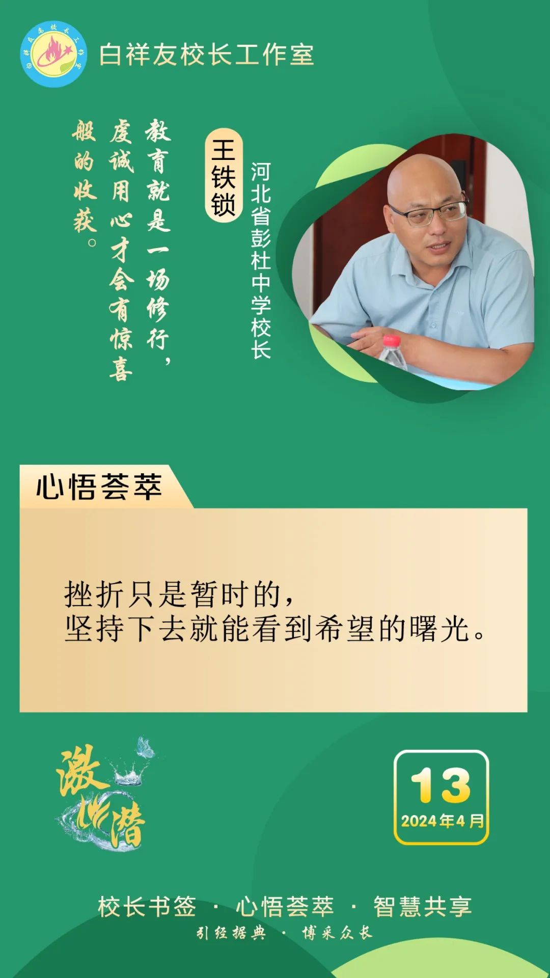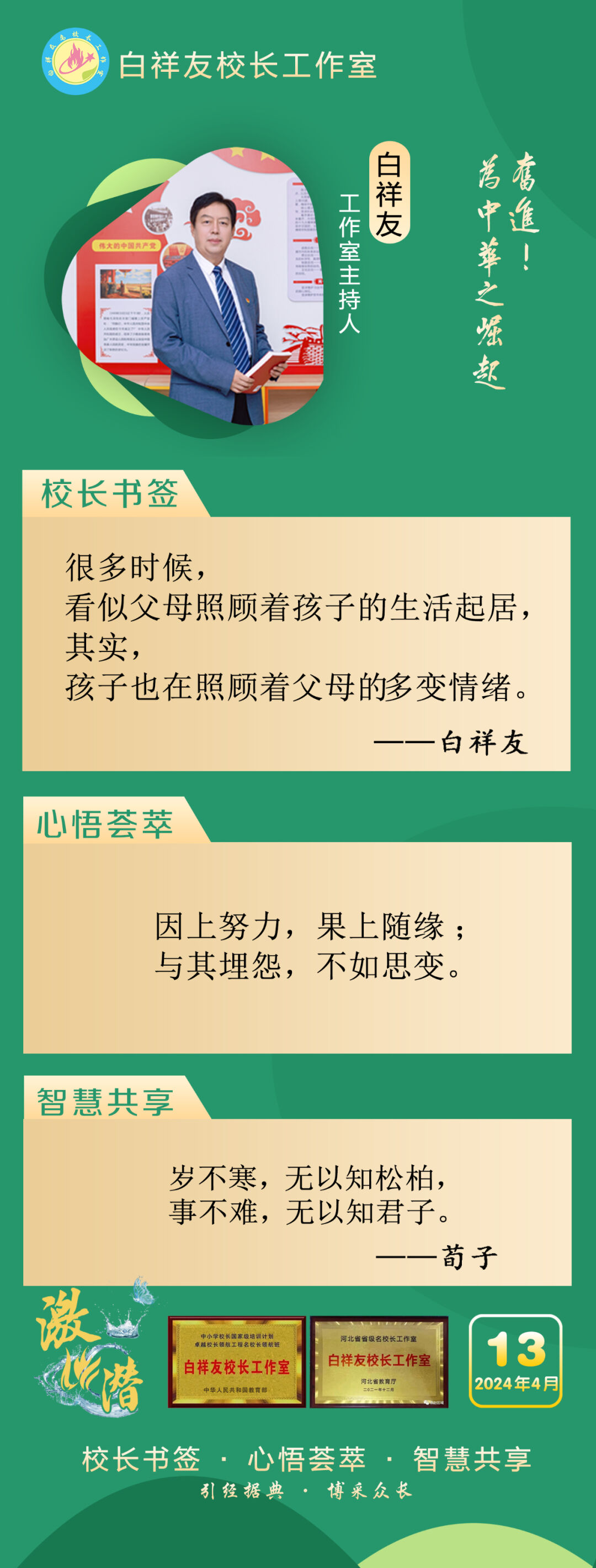 “白祥友校长工作室”成立于2019年4月,是教育部“国培计划”中小学名校长领航工程、河北省首批名校长工作室,目前省内外成员校20个。工作室坚持“资源共享、智慧共融、互助共赢”理念,已成为思想碰撞的交流场,资源共享的品牌站,成果展示的辐射源。 1 +1 微博 微信 我要评论 发布 相关推荐 中华人民共和国国民经济和社会发展第十五个五年规划纲要 时政 1天前 三月植树节,我们在衡水十三中种下春天! 教育大观 1天前 同心绘就中国式现代化新图景(社论)——热烈祝贺全国政协十四届四次会议胜利闭幕 要闻 3天前 衡水十三中荣登“全国总工会职工书屋”榜单! 教育大观 4天前 妇女节 衡水十三中女教师说说心里话 教育大观 4天前 激潜筑梦驰远志 奋进策马绘新篇——衡水十三中召开表彰大会 教育大观 4天前 阜中开展庆“三八”趣味活动 激情校园 5天前 热门 一天 三天 一周 1 壹视界·总书记两会“下团组”|健康中国怎么建?总书记这样强调 2 建行武邑支行:创新金融服务 赋能科技企业升级发展 3 新思想引领新征程丨牢记嘱托 团结奋斗 奋力开创中国式现代化建设新局面 4 工行枣强支行"科创贷"精准赋能 助企实现“科技变现” 5 微视频|新程之约 6 践行社会主义核心价值观|市文广旅局开展"竹编风铃挂饰”爱国主题实践活动 7 工行安平支行开展"金融为民"志愿服务 暖心帮扶特殊群体 8 工行故城支行专精特新贷支持“小巨人”转型蝶变 9 习言道|总书记的两会足迹 10 工行阜城支行金融活水赋能医用包装企业“智造”升级 1 人勤春来早 春管正当时——衡水市扎实推进春季农业生产纪实 2 衡水:滏阳河畔春意浓 繁花似锦醉春风 3 一方小田园 “种”出新生活——衡水滨湖新区开心农场春管见闻 4 衡水市将于4月初开展残疾人运动员选拔工作 5 衡水市启动社会救助兜底保障集中核查工作 6 衡水市区326座公交站亭集中“美容” 7 衡水市区宝云公园:修剪养护已完工 静待花开映日红 8 把“最活跃地带”打造成“最坚强阵地” 衡水以三大抓手破题新就业群体党建 9 衡水籍运动员米兰冬残奥会上再摘银! 王鹏耀获单板滑雪项目亚军 10 金融课堂开讲 楼道杂物清仓 ——中国农业银行衡水分行与桃城区河西街道广场社区党建共建签约记 1 “巾帼芳华 为爱赴约” 衡水市总工会举办青年职工相亲交友活动 2 政策宣讲 岗位对接 衡水市开展“春风行动”招聘会暨“情暖三八 社保护航”主题宣传活动 3 值班总编说报|春潮涌动千帆竞 实干争先万象新 4 一场制造业的“数字春雨”——衡水市景县优化营商环境一线探访 5 阜城县企业数字化转型培训会赋能产业转型升级 6 守护安全 畅通消费 衡水市2026年“3·15国际消费者权益日”系列活动启动 7 人勤春来早 春管正当时——衡水市扎实推进春季农业生产纪实 8 “彩墨凝香——2026年衡水市女书画家精品展”开展 百余幅书画精品尽显女书画家艺术风采 9 起宏图!奋进“十五五”AI超燃大片来了 10 央媒省媒关注全国两会中的“衡水声音” 广告 广告 广告 24小时 1 锚定绿色方向,打造“绿电粮仓”,张家口全力推进国家级可再生能源示范区建设 2 “最美自然守护者”王贵玲:把脉大地热源 深耕绿能未来 3 感恩奋进 双争有我丨燕山大学材料科学与工程学院:硬核科研 温暖育人 4 定州:万象“耕”新不负春 5 冀时新闻主播说丨让“放心消费”成为燕赵新名片 6 共享智造“县”在时丨高阳小毛巾,织出高质量发展崭新纹理! 7 “3·15”国际消费者权益日·长图|见招拆招!这份“避坑指南”快收好 8 学习新语·两会|奋进,在接力跑的新起点 9 微视频|共议家国事 10 2026年“金融3·15”特别报道|中华财险衡水中心支公司:聚焦保险主业 服务保障民生