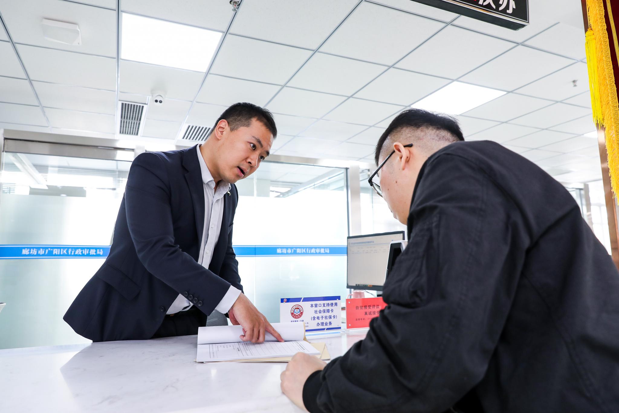 广阳区行政审批局,工作人员在指导办事人员进行业务办理。李峥