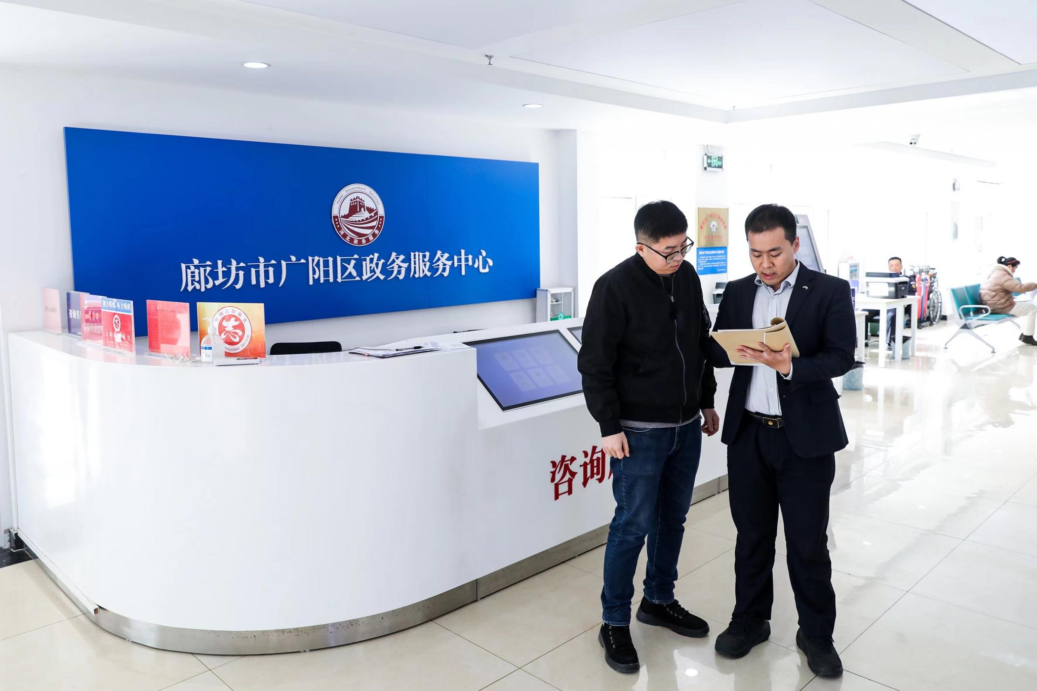 “您跟我来这边办理一下。”近日,在河北省廊坊市广阳区行政审批大厅,工作人员正为企业办理项目审批事项。