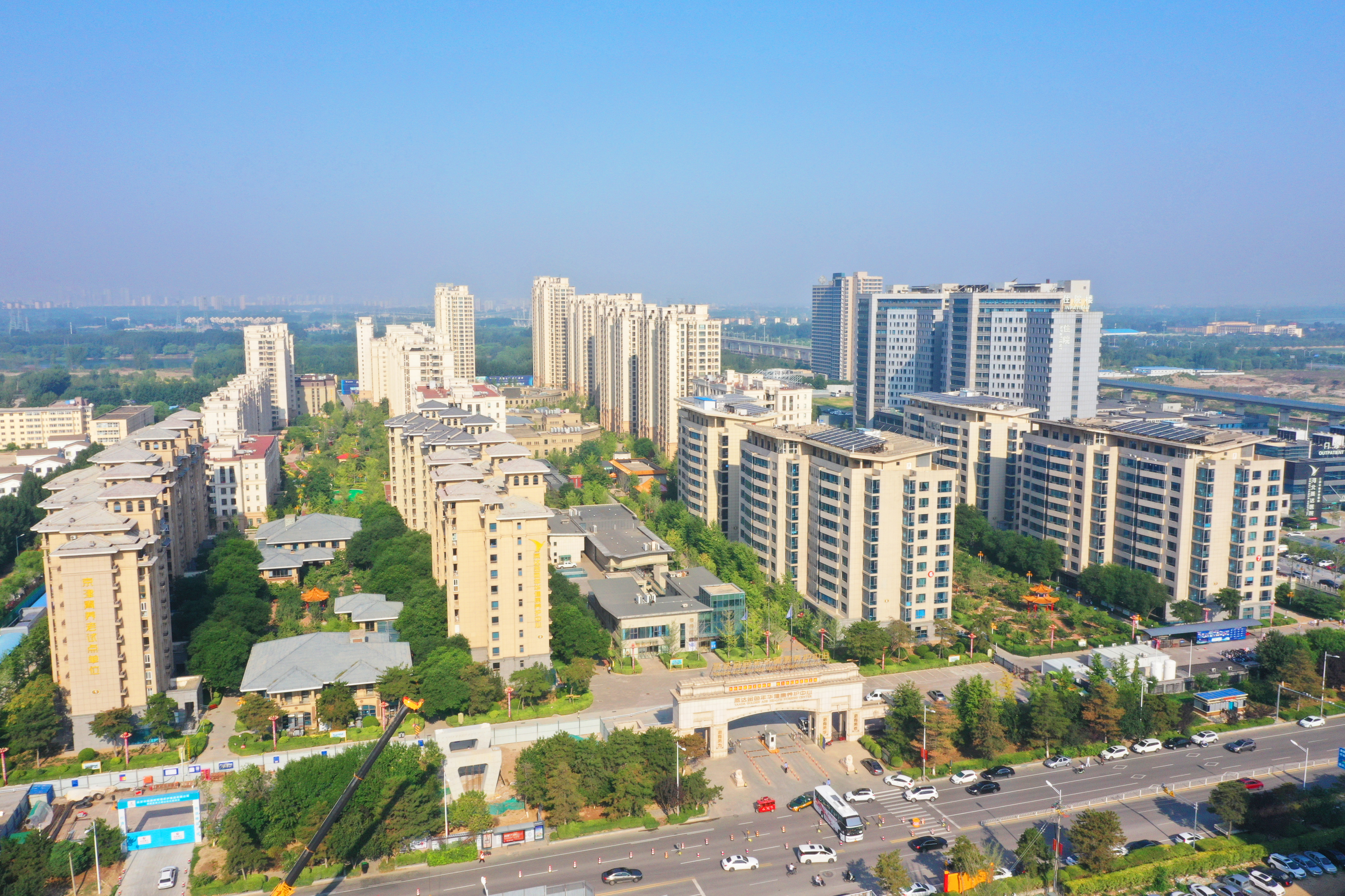 伫立在三河市燕郊高新区思菩兰路过街天桥,燕达金色年华健康养护中心(以下简称“燕达养护中心”)副总经理李东辉心生自豪:左眺是燕达养护中心一、二期项目,右望便是新落成的三期项目,左右联通。