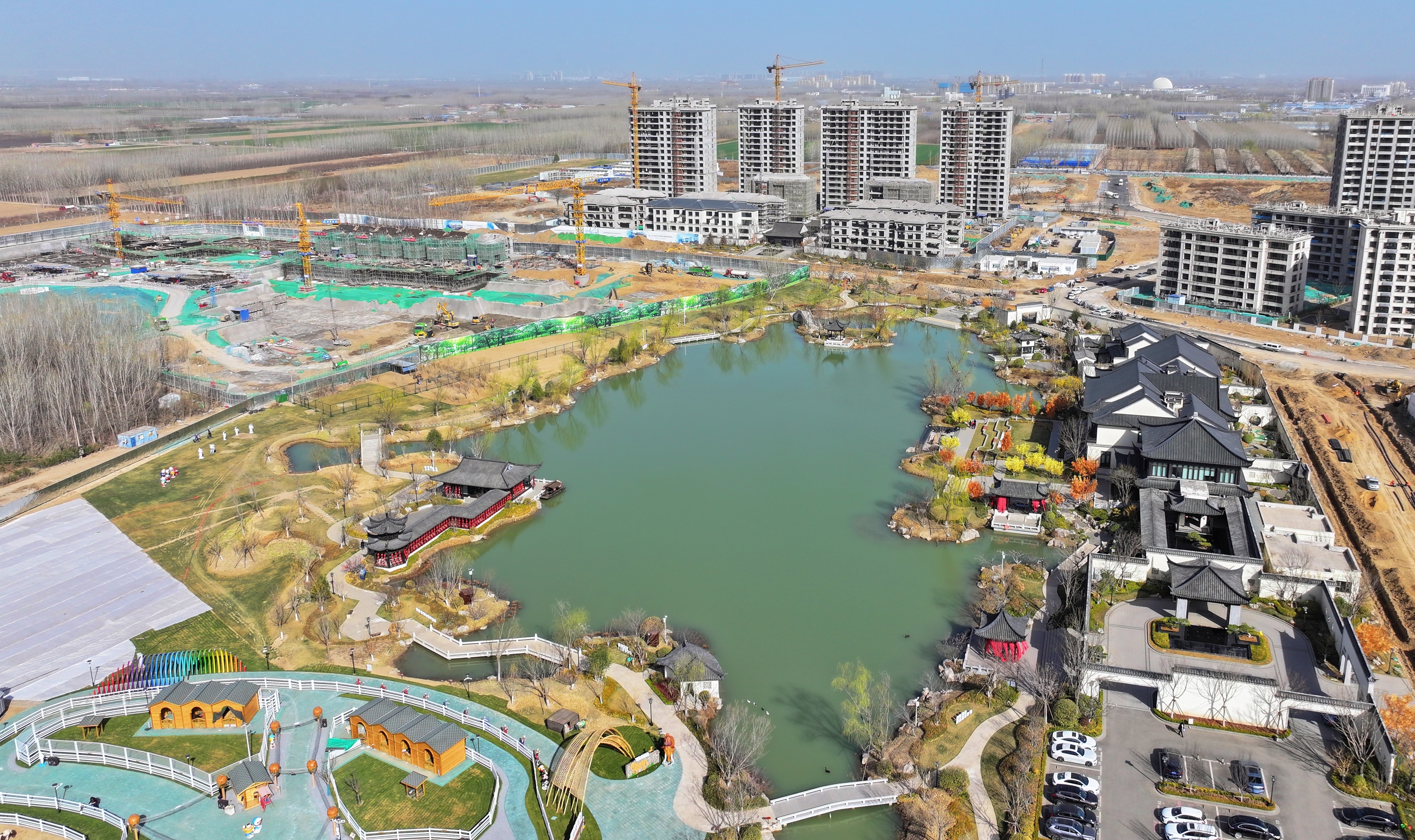 2024年4月1日,大厂回族自治县“域见未来”健康文化旅游产业园项目正在加紧建设。