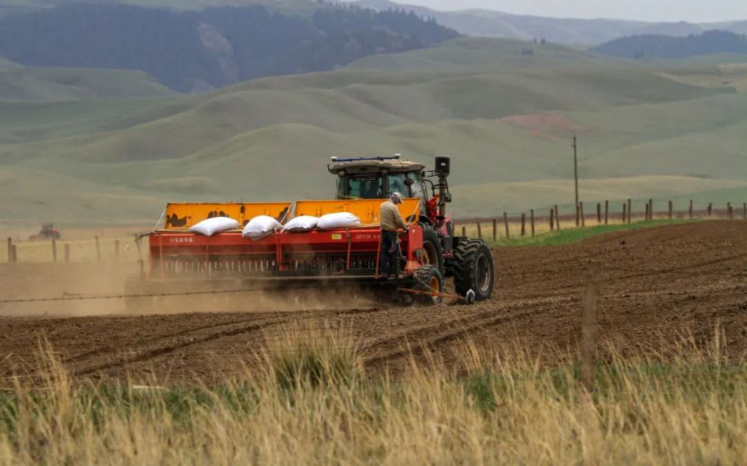 ▲资料图片:2023年6月11日,工人驾驶拖拉机在甘肃山丹马场一场播种燕麦草。(新华社)