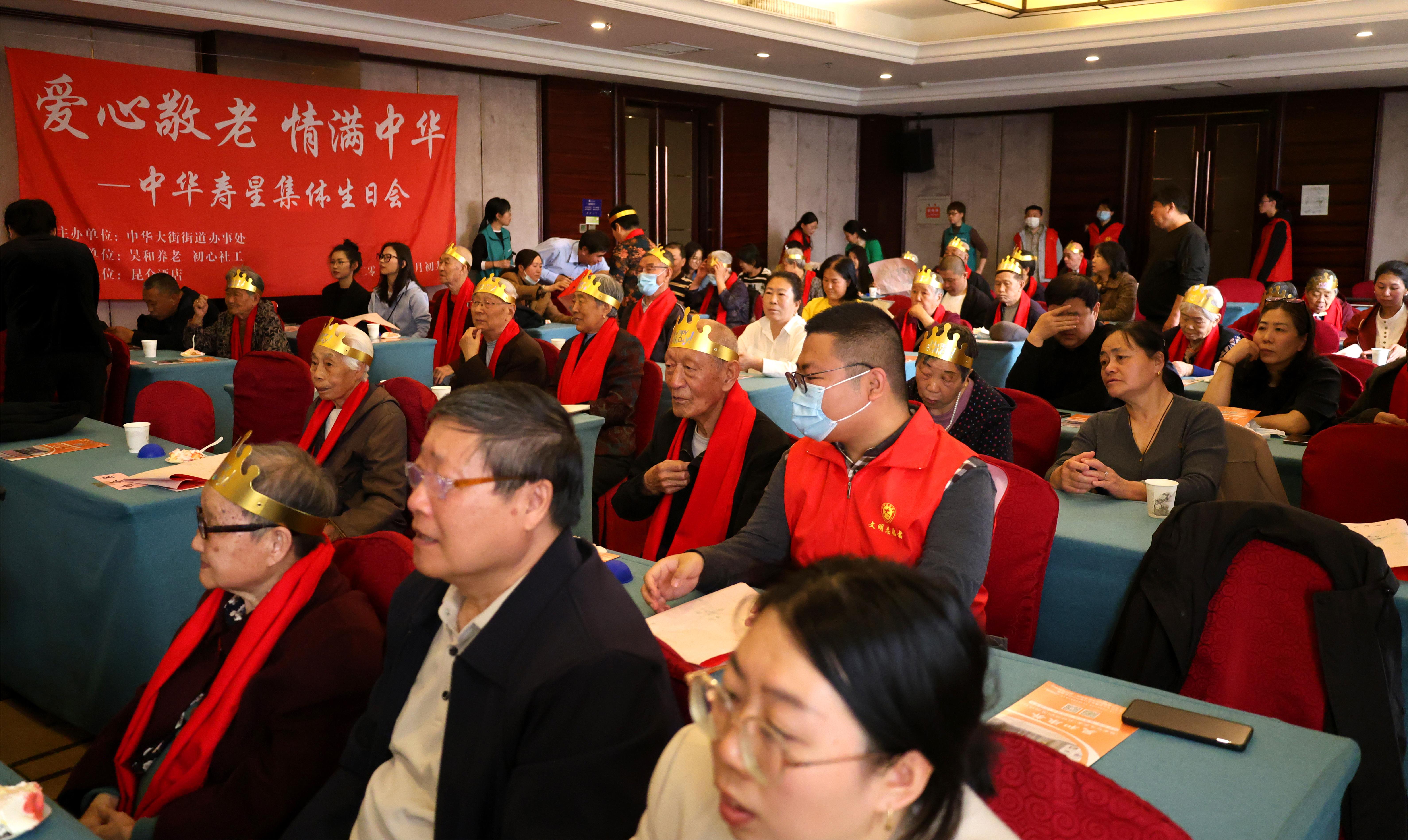 为弘扬爱老、尊老、敬老、助老的良好社会风气,让老年人感受到社区大家庭的温暖,4月17日,衡水桃城区中华大街街道办联合衡水昊和养老服务有限公司、衡水市初心社会工作服务中心,在和平路昆仑大酒店为三十余名当月过生日的高龄老人举办了一场温馨欢乐的集体生日宴。