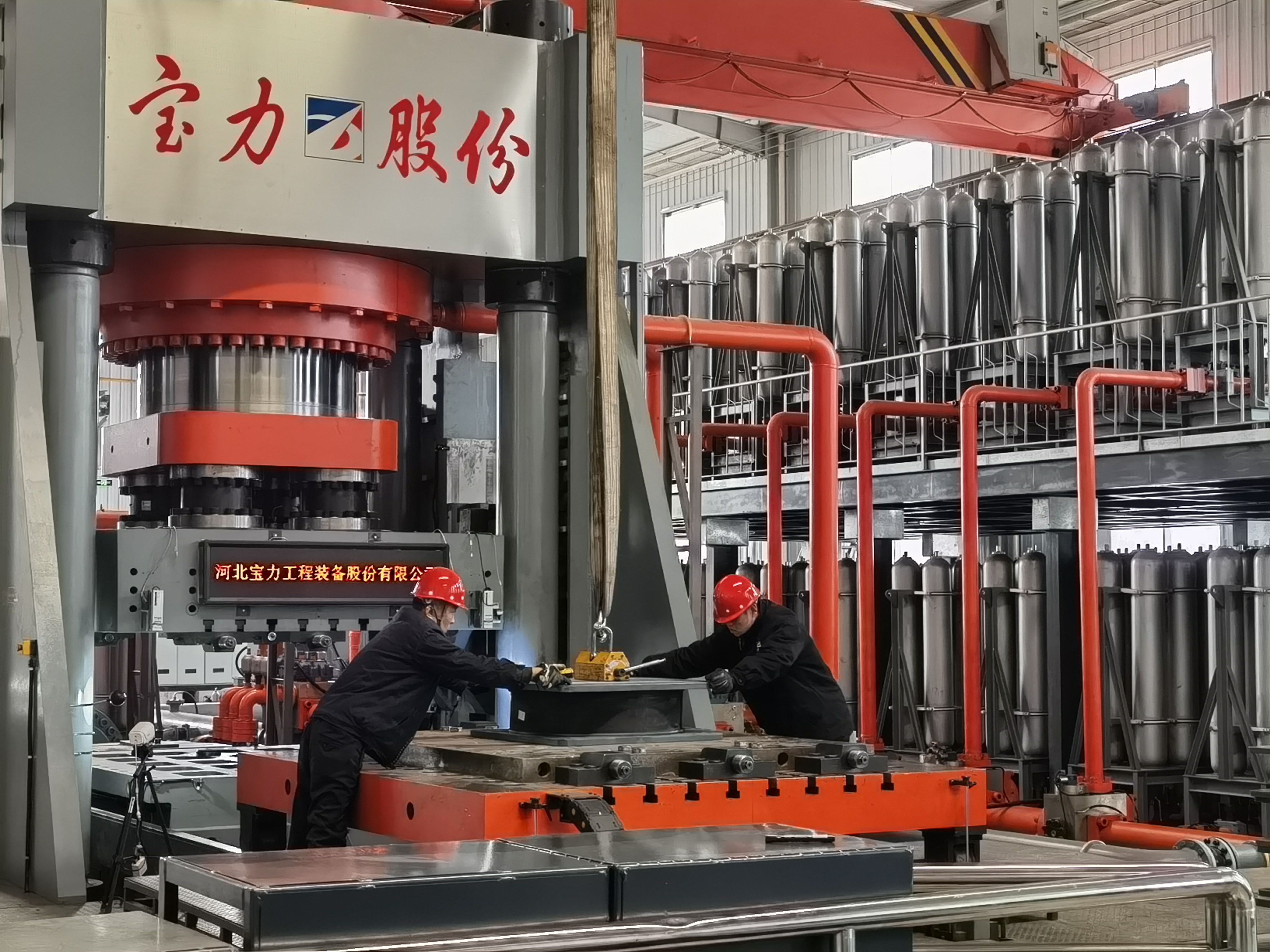 河北宝力工程装备股份有限公司内5000吨动态压剪试验机正在做实验
