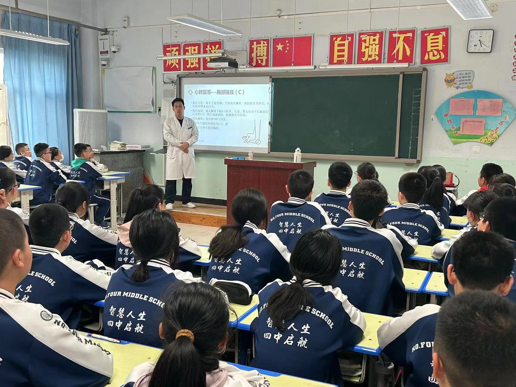近日,衡水市第四人民医院急诊科医护人员来到衡水市第四中学开展科普急救知识进校园活动,重点向学生们普及海姆立克和心肺复苏等急救技能。