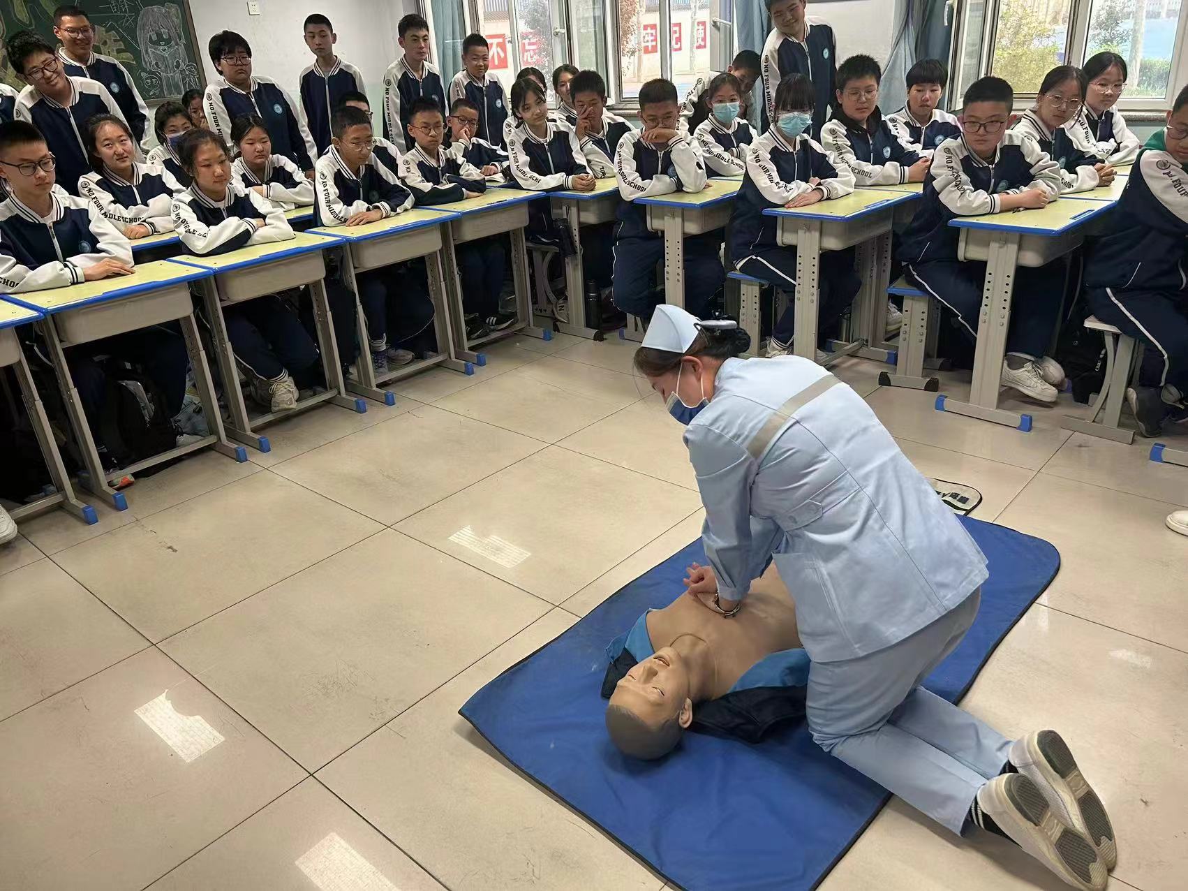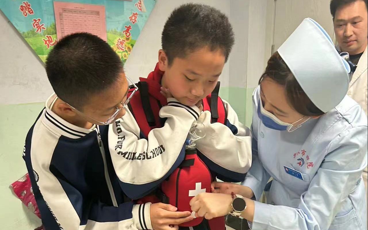 “遇紧急情况可以拨打120等待医护人员,我们为什么要学习急救知识呢?”“这个问题问得好!气道完全阻塞的窒息只需持续6分钟心脏就会停止跳动,心脏骤停6分钟后会出现脑细胞死亡,所以学习急救知识关键时刻会挽救生命,为医护人员争取更多的救治时间。”面对同学的疑惑,急诊科医护人员开门见山给予了解答。