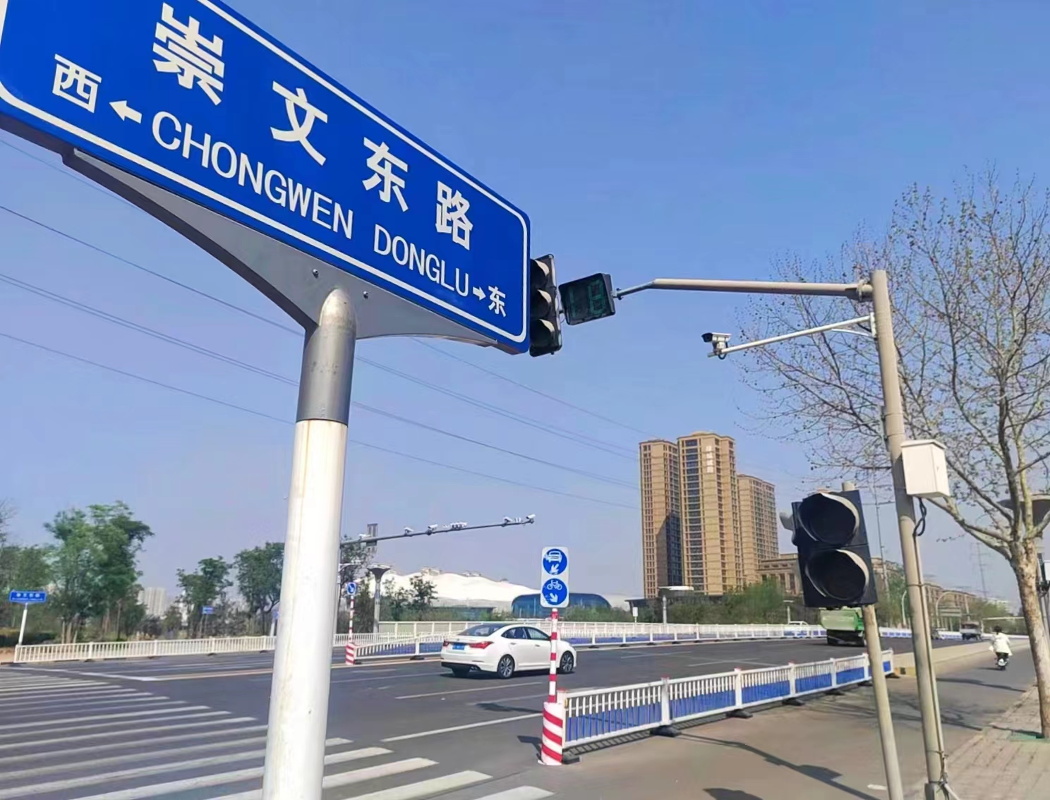 4月18日中午,艳阳高照,记者在衡水市第十五中学南侧这条路走访发现,原来滏阳一路的路名牌已更换成了蓝底白字的崇文东路和崇文西路,新安装的道路路名牌在阳光的照耀下格外醒目,形成一道独特的文化风景,令人耳目一新。“这条路上有十五中等学校,新更名的街道名称充满了浓厚的文化气息,彰显了城市文化底蕴,提升了城市文化品位。”说起新更改的道路名称,正在附近接孩子的市民程先生说。