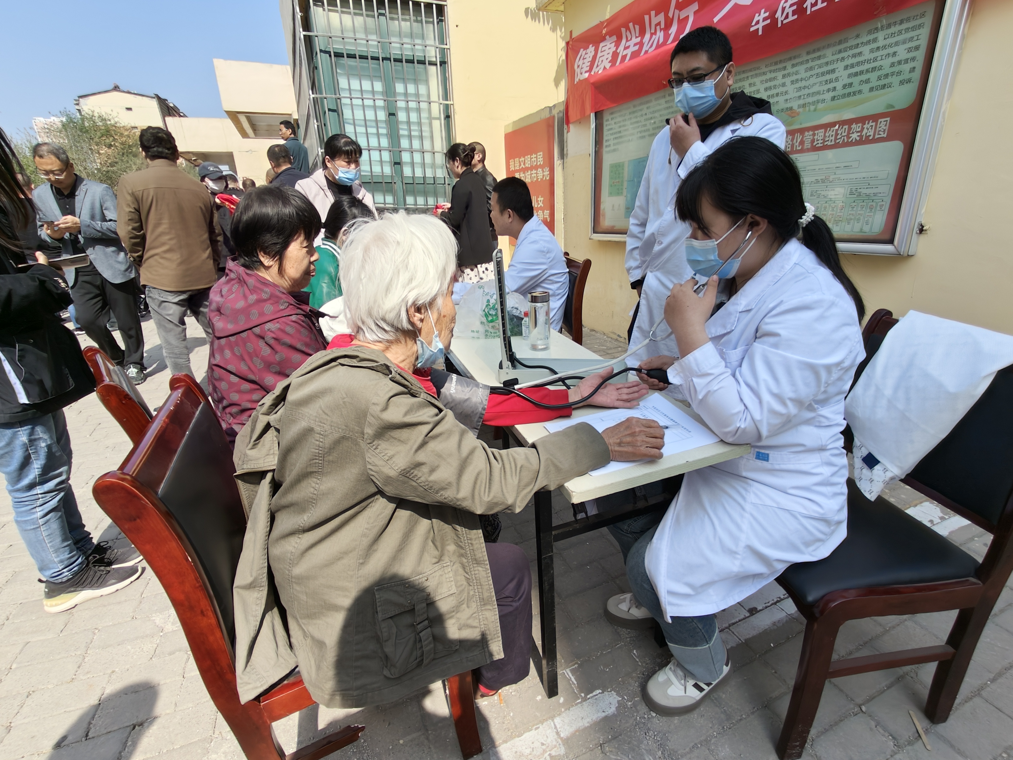 为了开展好这次活动,让社区居民有更好的体验,社区还安排了社区卫生服务站前来义诊,许多社区老年居民热情参与中医问诊、测血压、测血糖等项目。据统计,本次活动中医问诊26个,测血压46个,测血糖12个。
