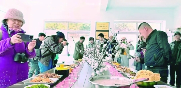 杏花节期间,游客们参观、品尝龚庄村特色美食。 (图片由通讯员凤明霄提供)