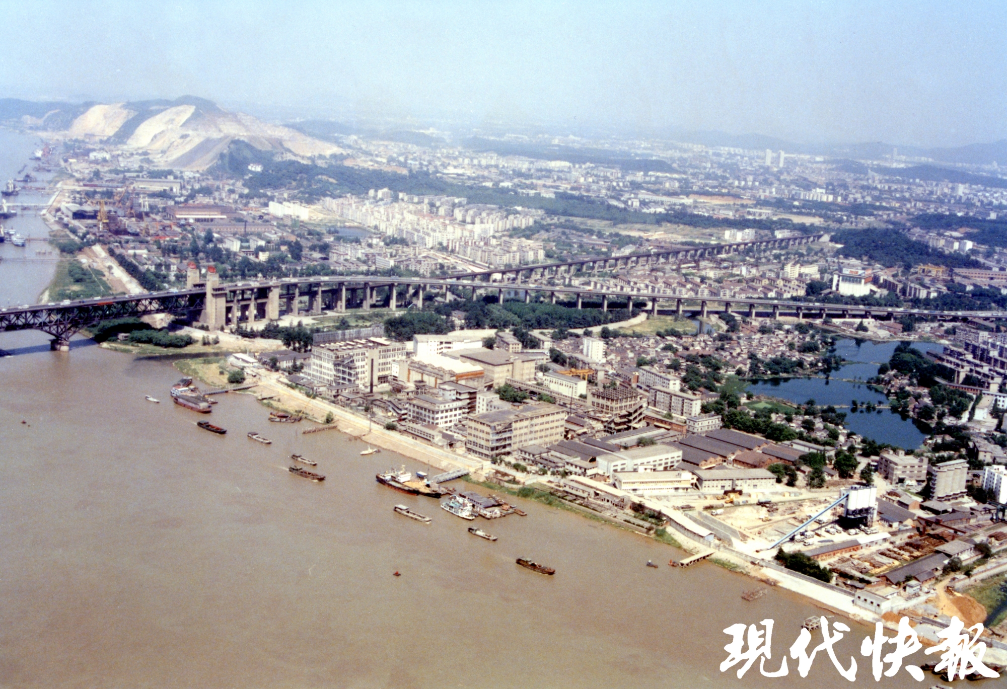 上世纪八九十年代从长江大桥眺望幕府山