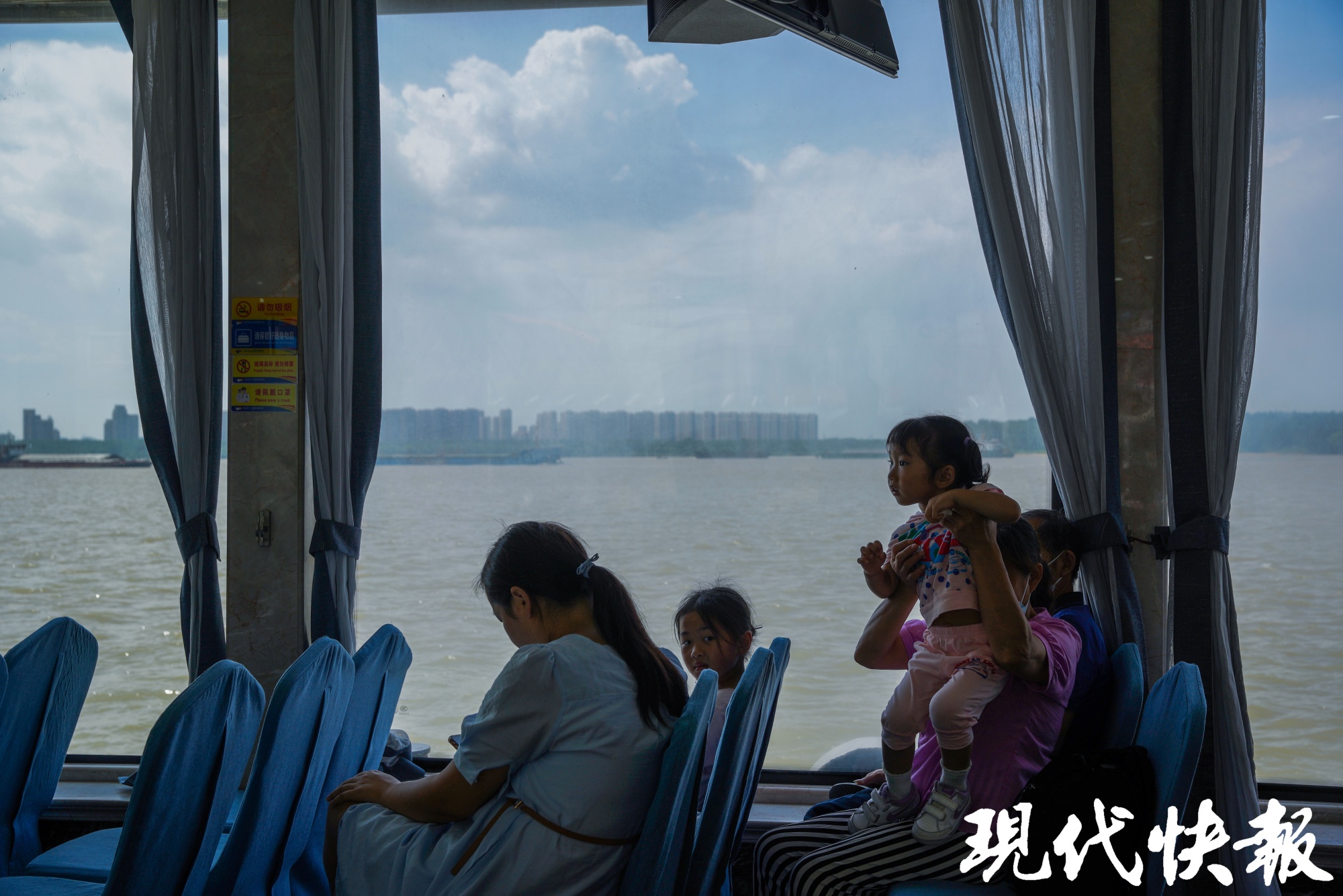 游客乘坐游轮欣赏长江美景