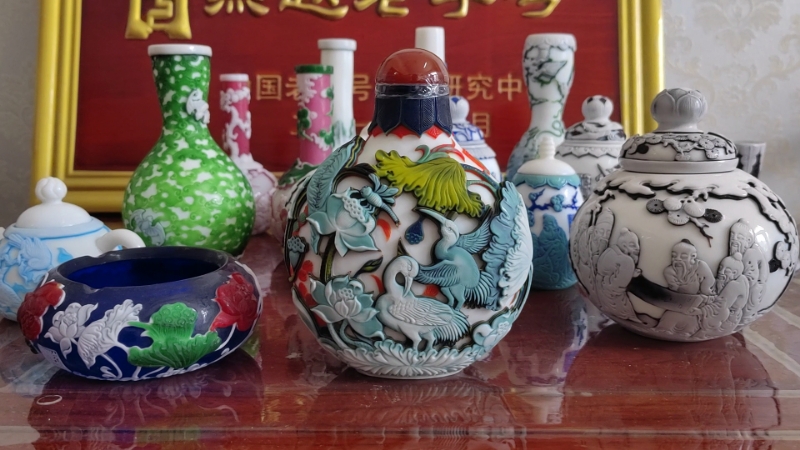 张永水介绍,琉璃雕刻工艺十分复杂,要经过“火里来去”的凤凰涅槃式的制作过程,经过选料、烧制、冷加工、设计图案、雕刻、抛光等十几道复杂细密的工序才能完成,一个普通制品大概需要花费3-5天的时间。