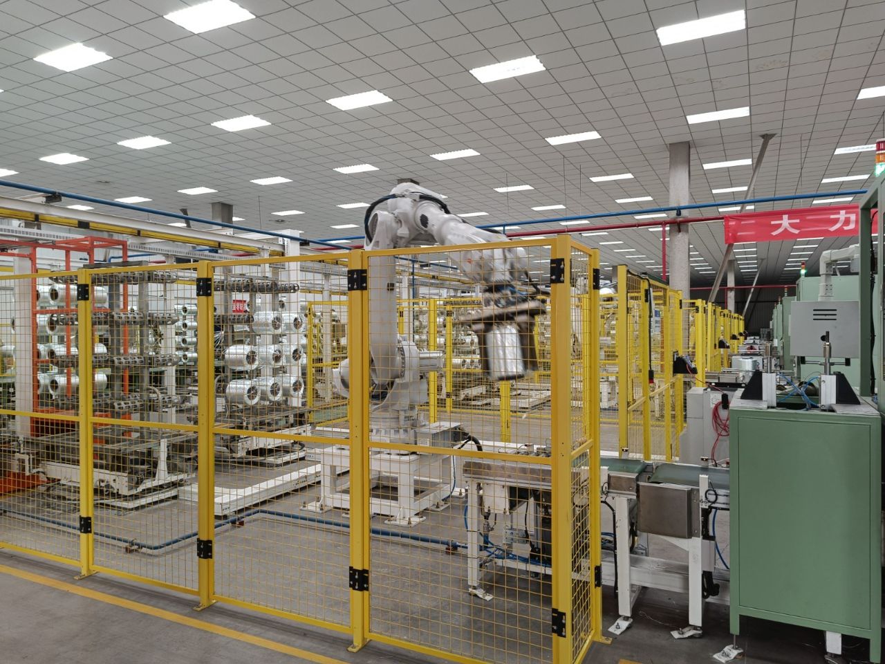 河北冀中新材料有限公司内,智能机械臂把产品运送到包装流水线。(赵路沙摄)
