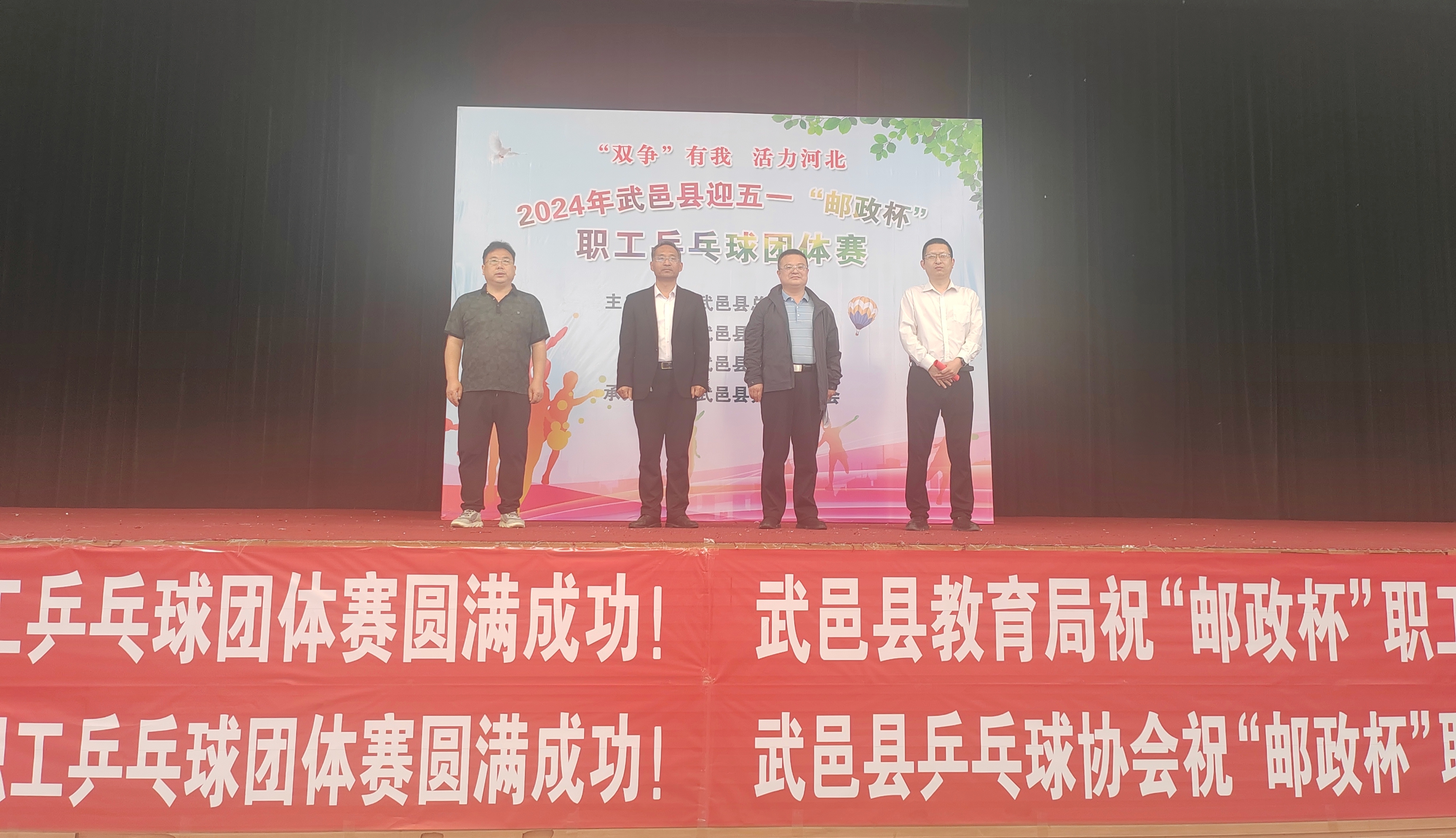 为迎接“五一国际劳动节”,4月21日,武邑县“邮政杯”职工乒乓球团体赛在县体育馆举行。