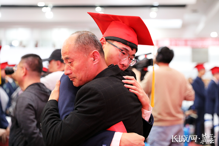 学生与家长深情拥抱。长城网·冀云客户端记者 卢婉凤 摄