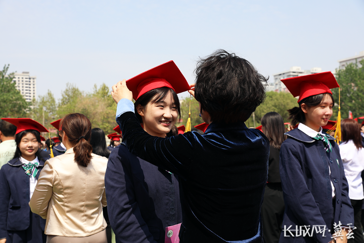 家长为孩子冠戴“成人帽”。长城网·冀云客户端记者 卢婉凤 摄