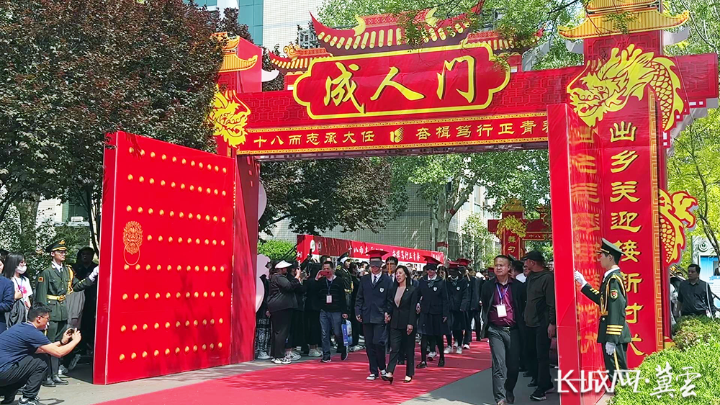 学生牵着父母的手走过“襁褓”“舞勺/豆蔻”,跨过“成人门”。长城网·冀云客户端记者 卢婉凤 摄