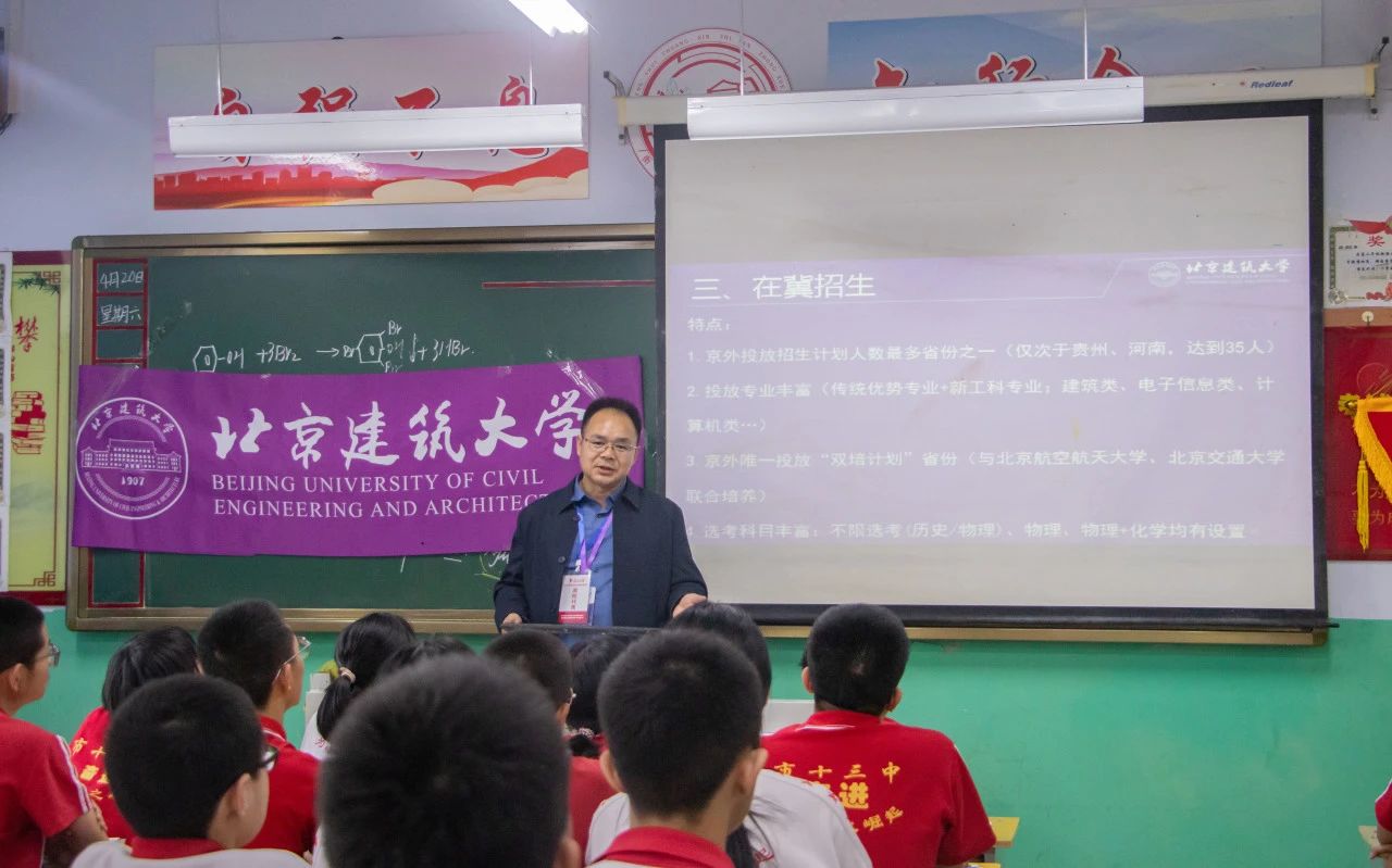 各大高校招生老师走进十三中各班介绍各自学校并解答同学们关于高招的问题。