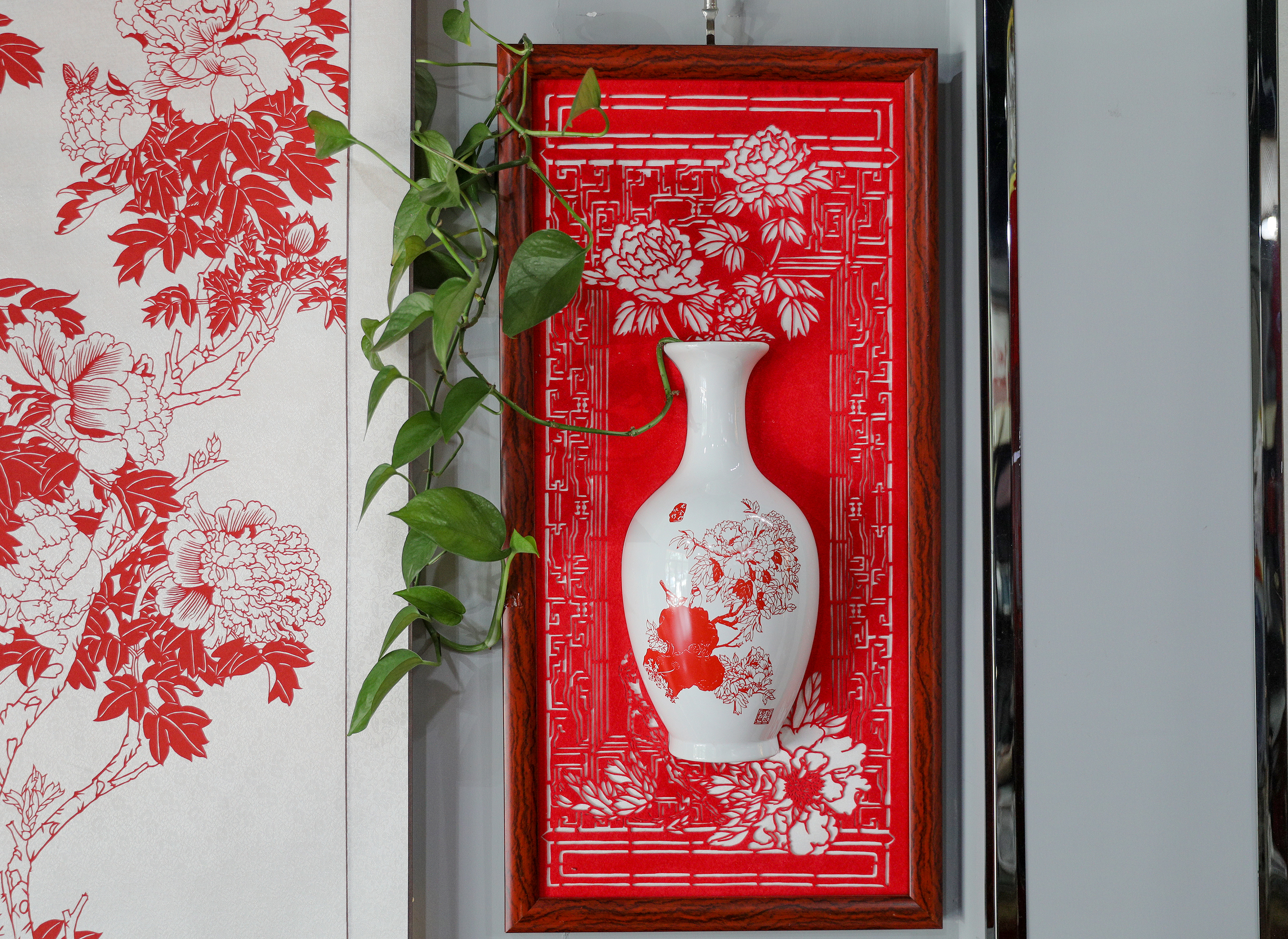 剪纸与生活相碰撞,走上折扇、附于挂历、融进竹编制品饰件。独具匠心的与瓷器碰撞打造的镂空之美,与服饰碰撞打造的立体之美,剪纸旗袍秀更是给生活增添了靓丽风景。