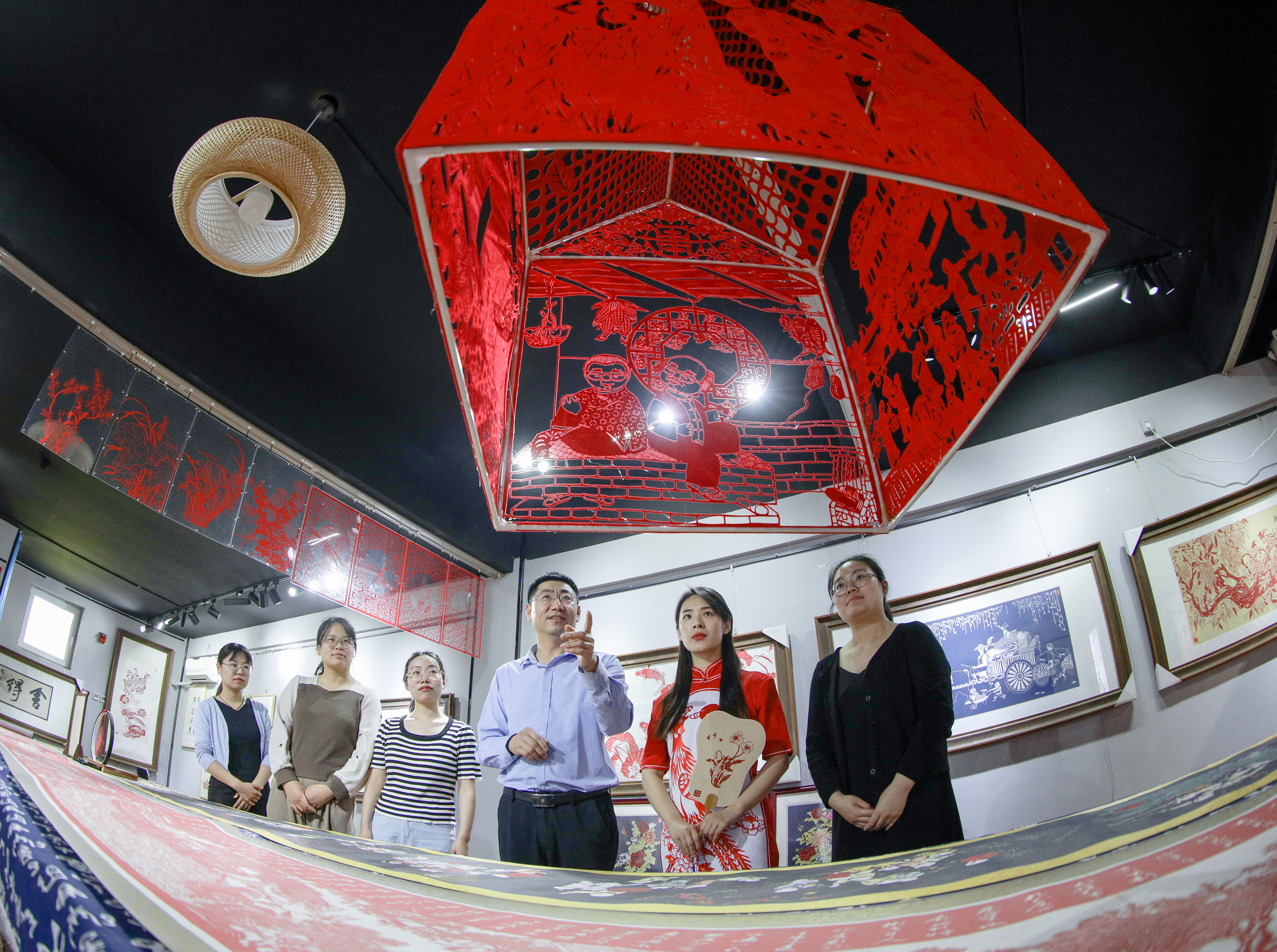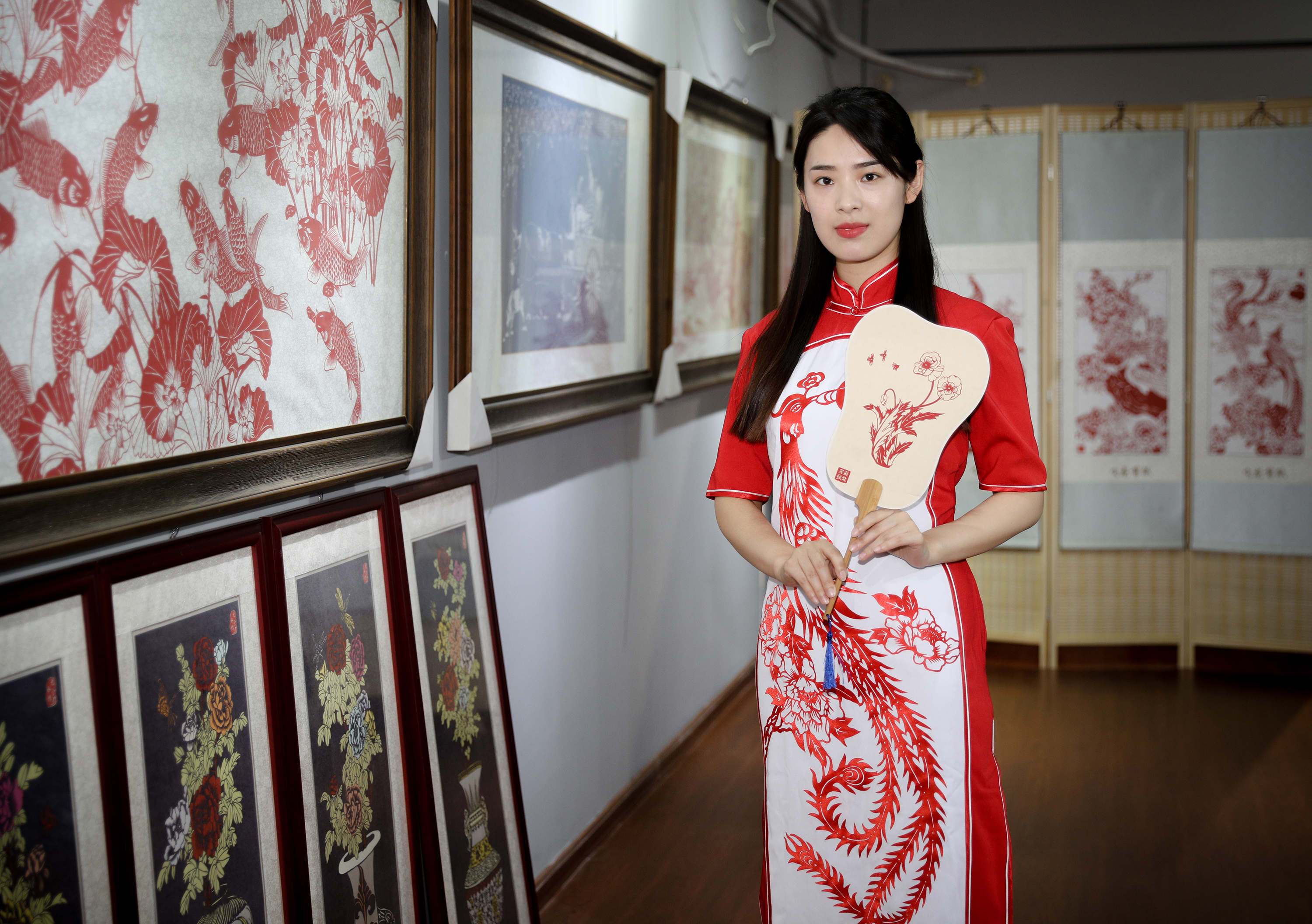 阜城县群众体验剪纸元素旗袍。