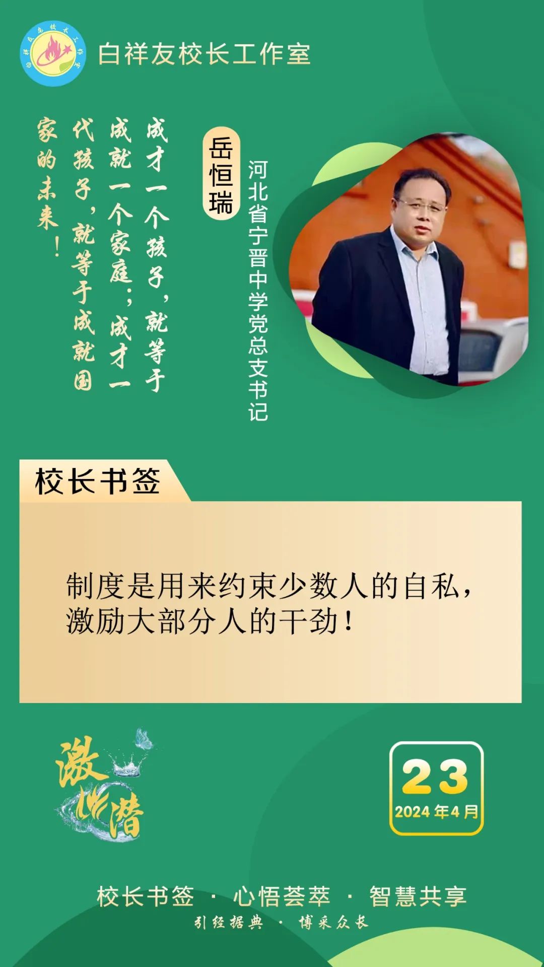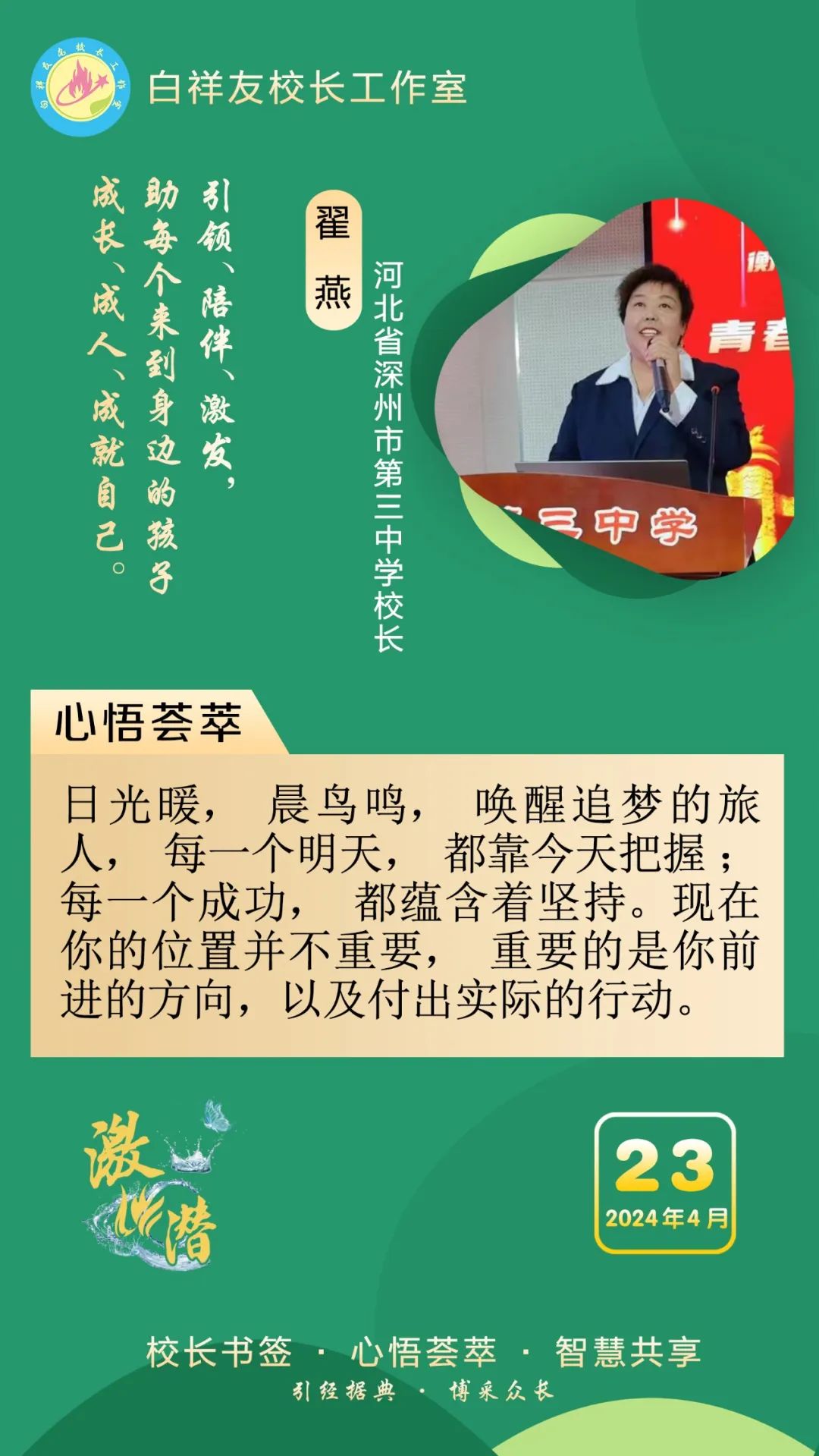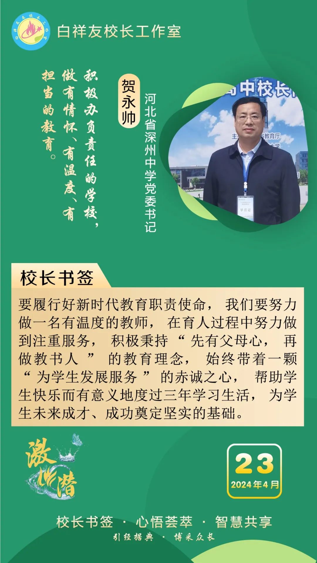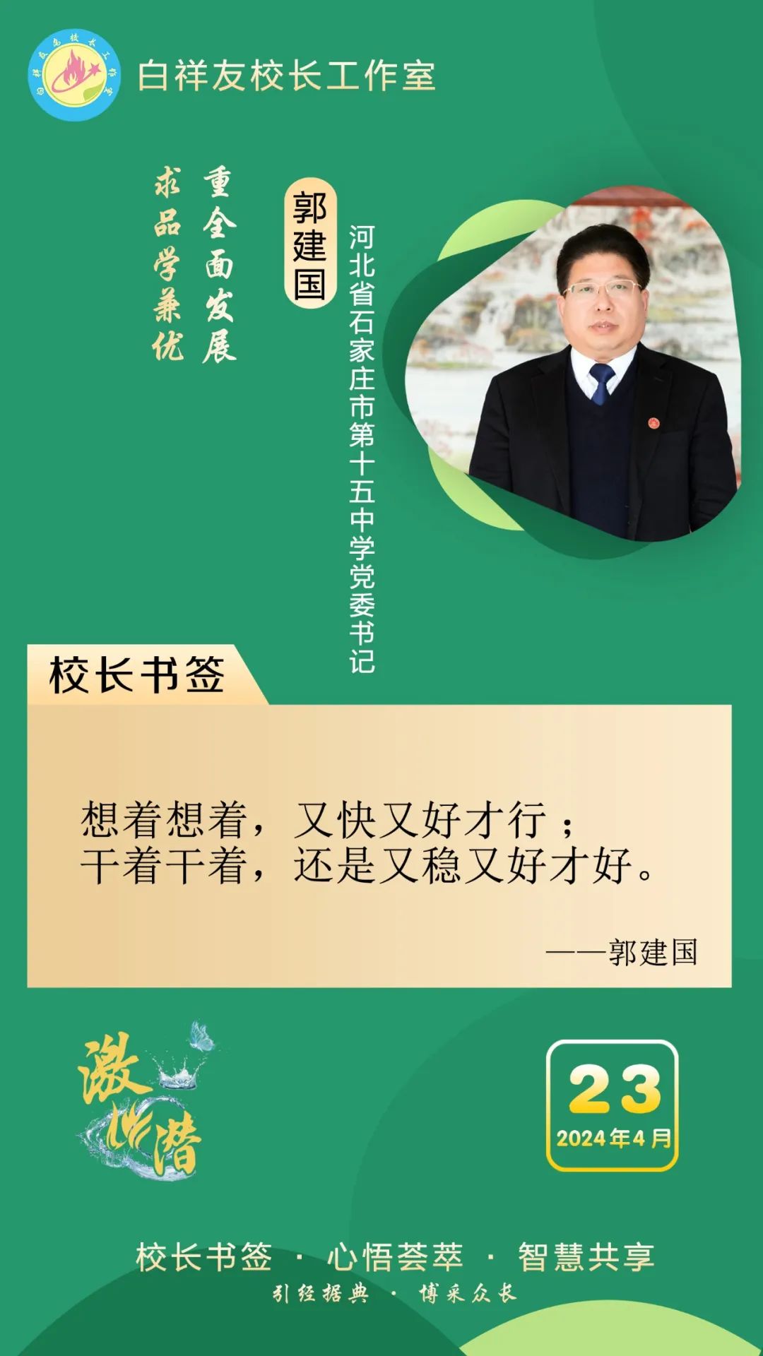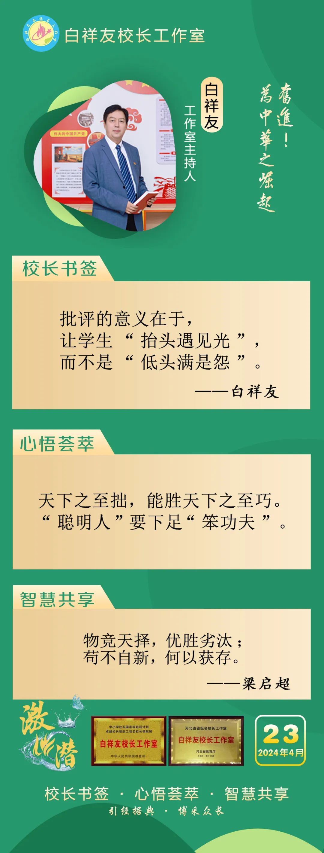 “白祥友校长工作室”成立于2019年4月,是教育部“国培计划”中小学名校长领航工程、河北省首批名校长工作室,目前省内外成员校20个。工作室坚持“资源共享、智慧共融、互助共赢”理念,已成为思想碰撞的交流场,资源共享的品牌站,成果展示的辐射源。