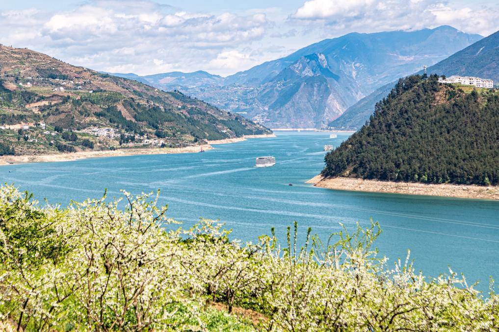 3月25日拍摄的重庆市巫山县曲尺乡长江两岸的万亩李花。新华社记者 唐奕 摄