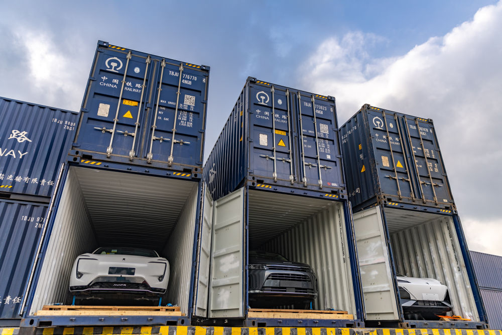 这是近日在重庆团结村中心站拍摄的等待出口的新能源汽车。新华社记者 黄伟 摄