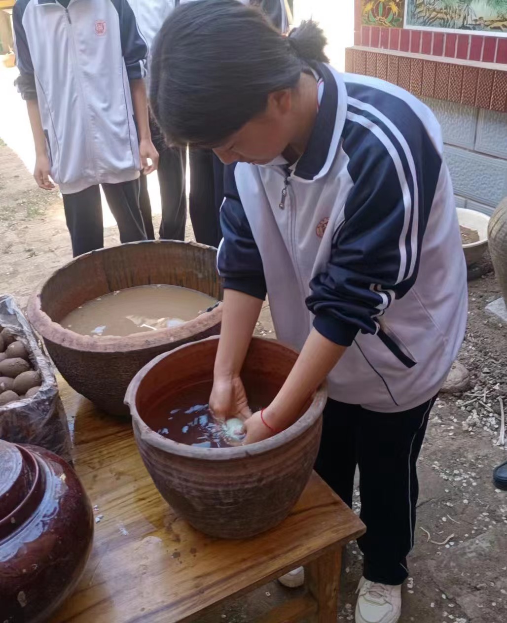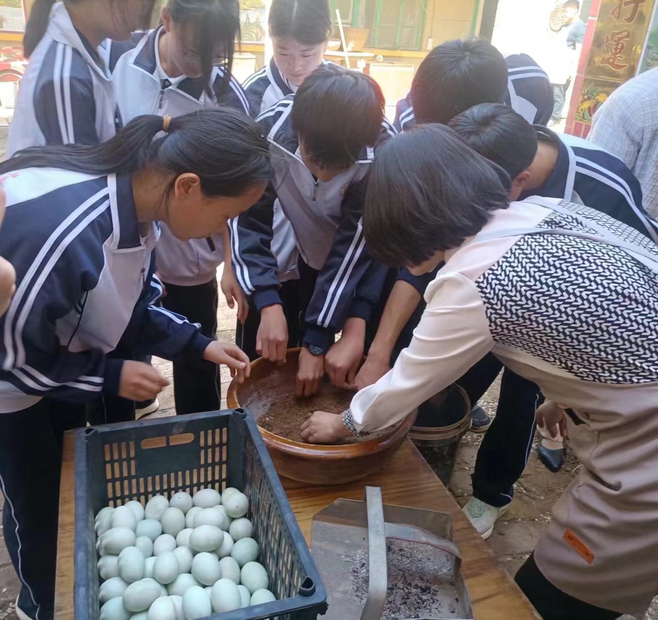 最后,学生们还品尝刚出炉的烤鸭蛋。他们一边品尝,一边讨论着鸭蛋的口感和味道:嫩滑的蛋清透出烤制的焦香味,流油的蛋黄绵密软糯,美味的烤鸭蛋不仅让大家满足了味蕾,更增强了对本地特色文化的认同感和自信心。他们表示,这次经历将激励他们在未来的学习和生活中更加尊重和传承这些宝贵的文化遗产。