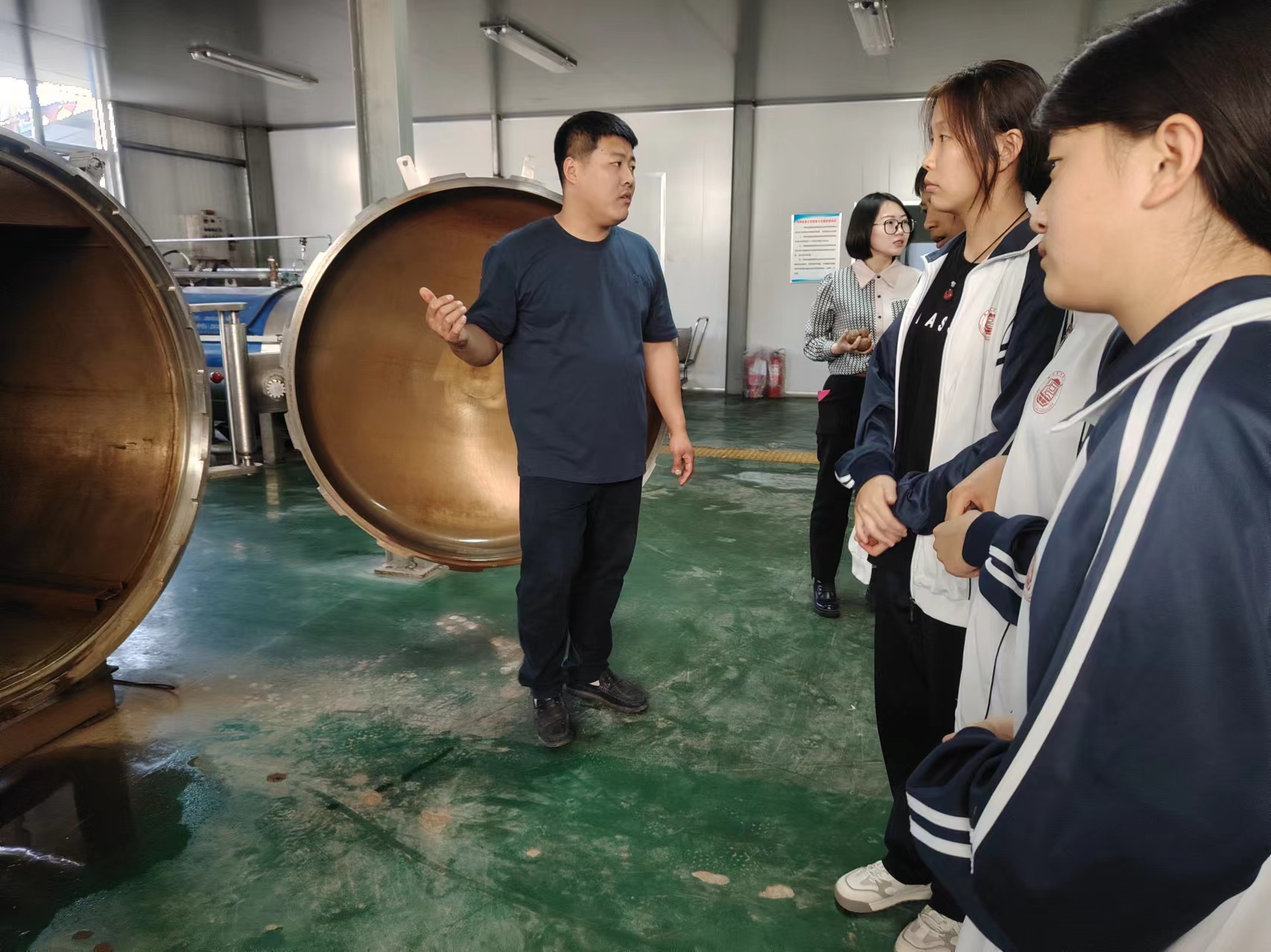 衡水湖烤鸭蛋是衡水特色美食,具有浓厚的历史文化价值和地域特色,其制作技艺汇聚了湖区劳动人民的智慧和劳动的传统文化内涵。当天下午,工坊内,“盐河故道”烤鸭蛋品牌的创始人王铁证为学生们讲解了烤鸭蛋的历史渊源,以及传统制作流程,并指导学生们动手参与进来,挑选鸭蛋、调制泥浆、浸泡、烤制……大家在王铁证的指导下,小心翼翼地参与到烤鸭蛋的一道道制作工序中。“每一道工序听起来很简单,但通过现场观看和尝试,我们才发现每一步都需要用心,原来美味的烤鸭蛋需要这么精心地制作才能完成。”现场,学生张丽兴奋地说。随后,学生们还参观了位于滨湖新区半壁店村的烤鸭蛋企业,了解烤鸭蛋制作中的现代化清洗、包装、杀菌等设备,感受传统工艺与现代技术的结合。