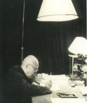 老年李晓明伏案写作。