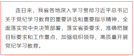 以县(市、区)为单位,开展基层党组织"政治学习日"和主题党日,与优化营商环境、推进乡村振兴、深化基层治理等重点工作相结合,确保党纪学习教育不落下一个支部、 不落下一名党员,力戒形式主义,严防"两张皮",确保"两促进"。