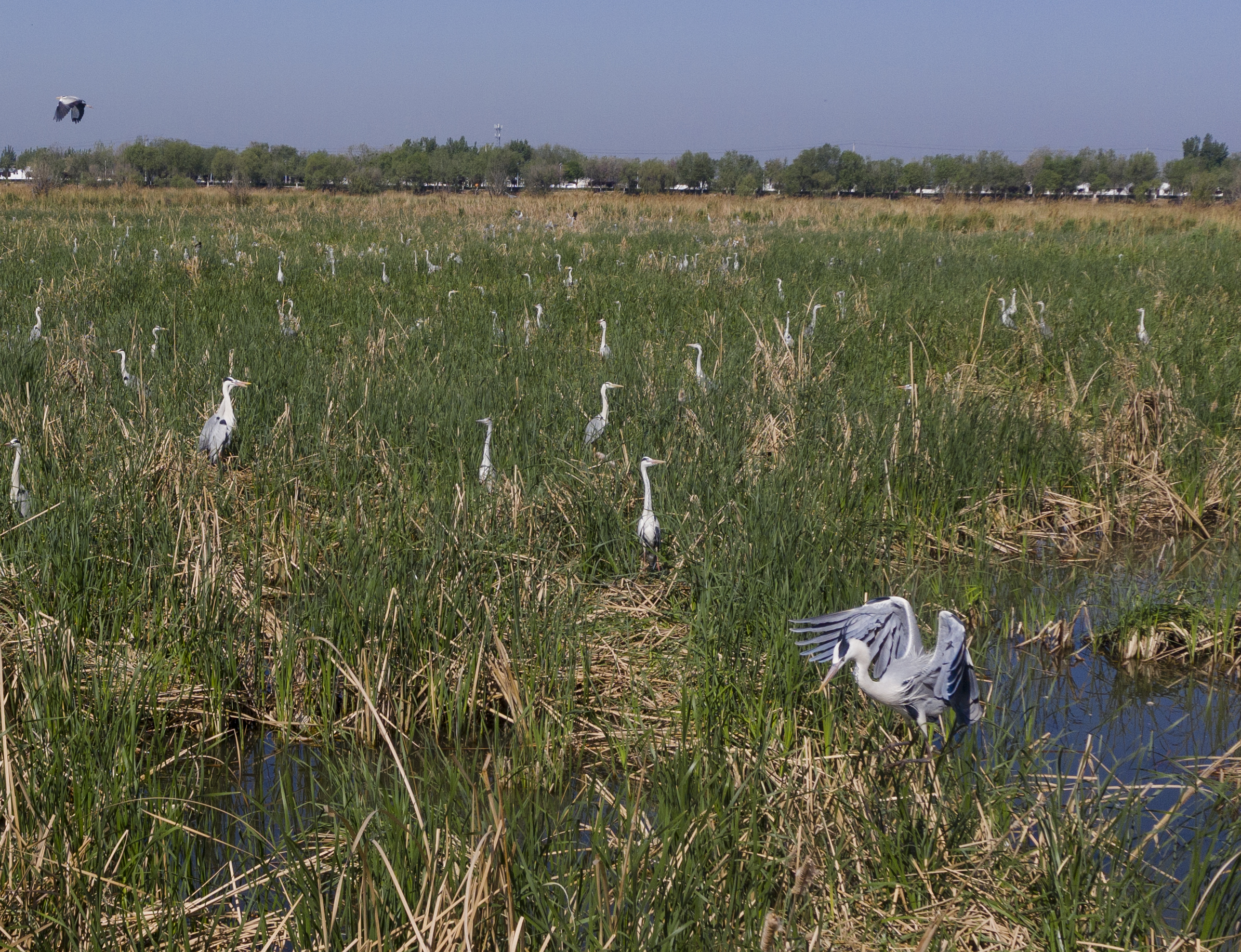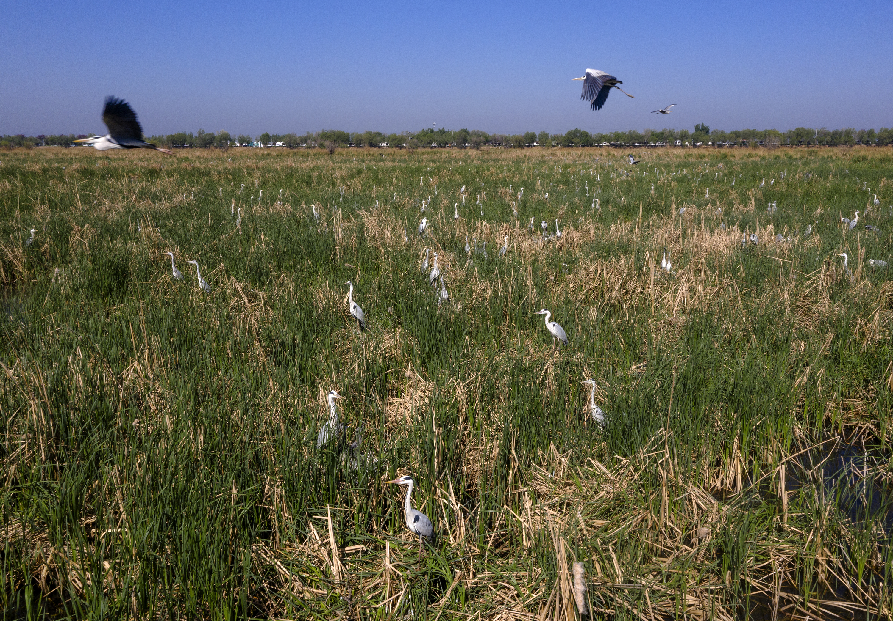 近期,在“京津冀最美湿地”衡水湖,白鹭、苍鹭、夜鹭等鹭鸟进入孵化哺育旺季。