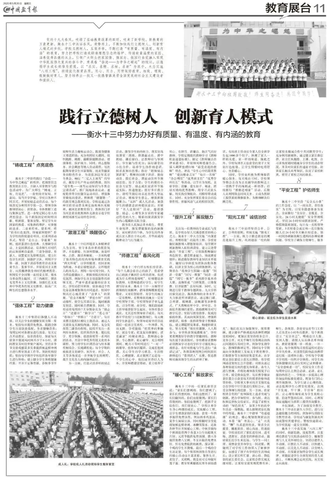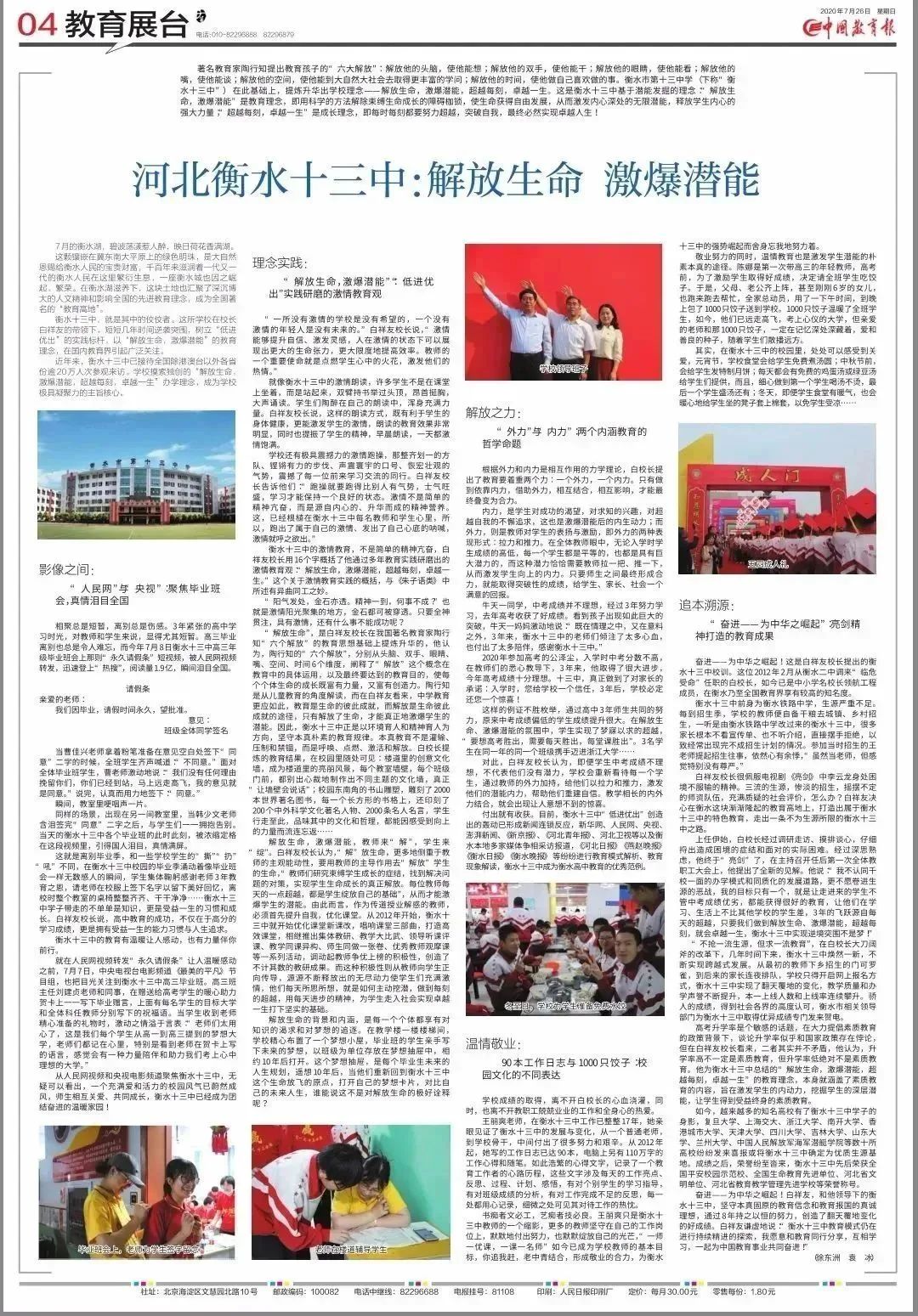 形成了自己独特适合学校发展的激潜教育理念,成就十三中的辉煌。