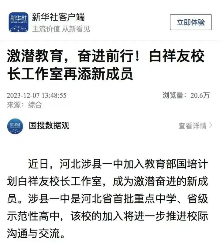 随着工作室的发展壮大,众多媒体聚焦工作室多项研修活动。新华社客户端、中国网、中国日报网、中国教育报、学习强国平台、河北共产党员网、河北日报、河北新闻网、河北广播电视台、长城网冀云客户端等多家媒体报道工作室的动态情况。工作室微信公众平台自2023年6月激潜教育探索随笔栏目启动以来,共推出240期,引经据典、博采众长,白祥友书记倡导的激潜教育,从“一枝独秀”到“百花齐放”,引领着更多志同道合者携手成长。