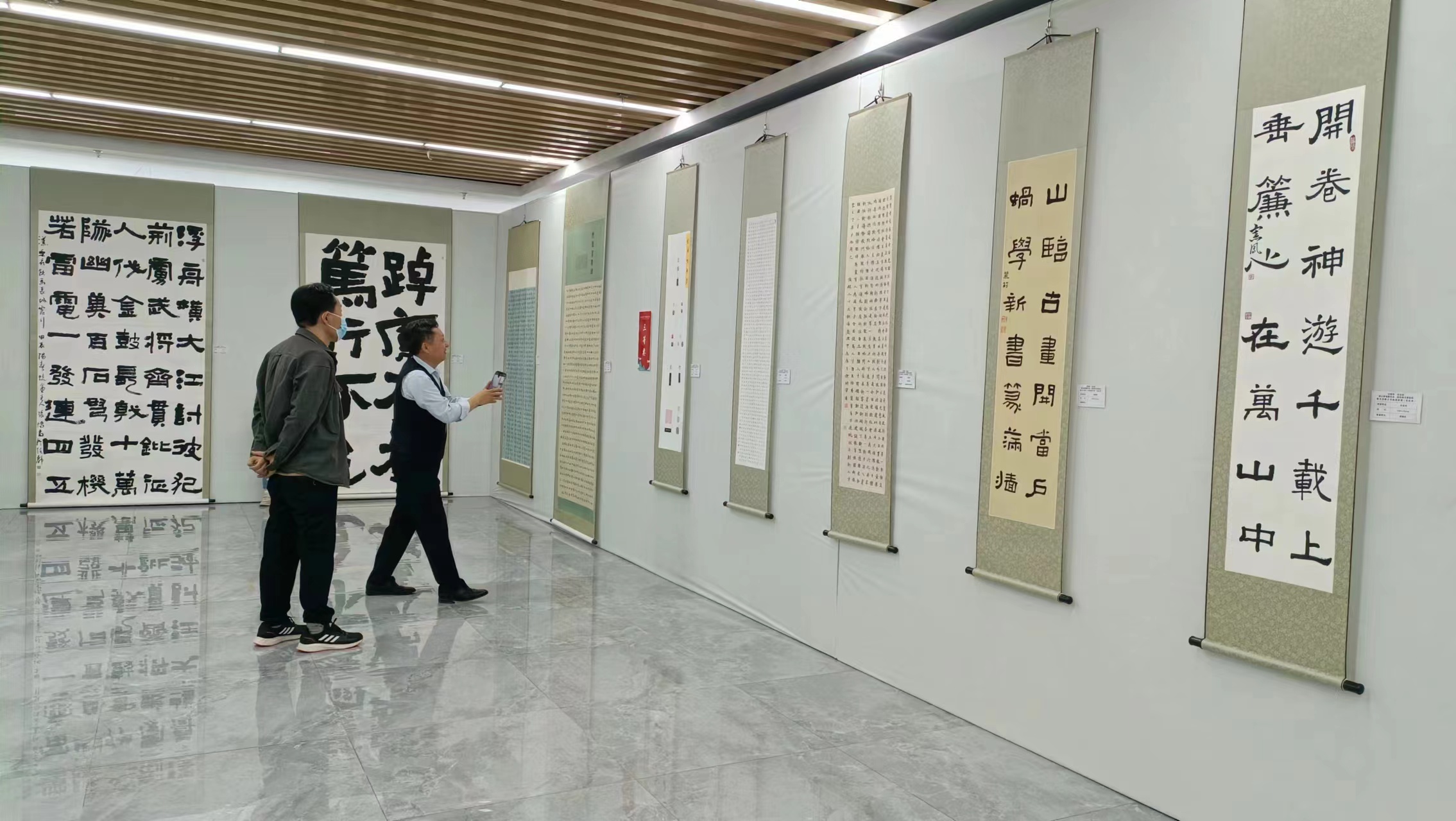 徜徉于各个展区之间,不少观众时而驻足凝神欣赏,时而低声品评讨论,还不时拿手机拍照、录像,记录触动人心的作品细节。景县退休职工潘咏梅兴致勃勃地带着自己的外甥女来看书画展,边看边拍照。一幅幅立意鲜明、精彩纷呈的艺术作品,让她流连忘返,倍感欣喜。